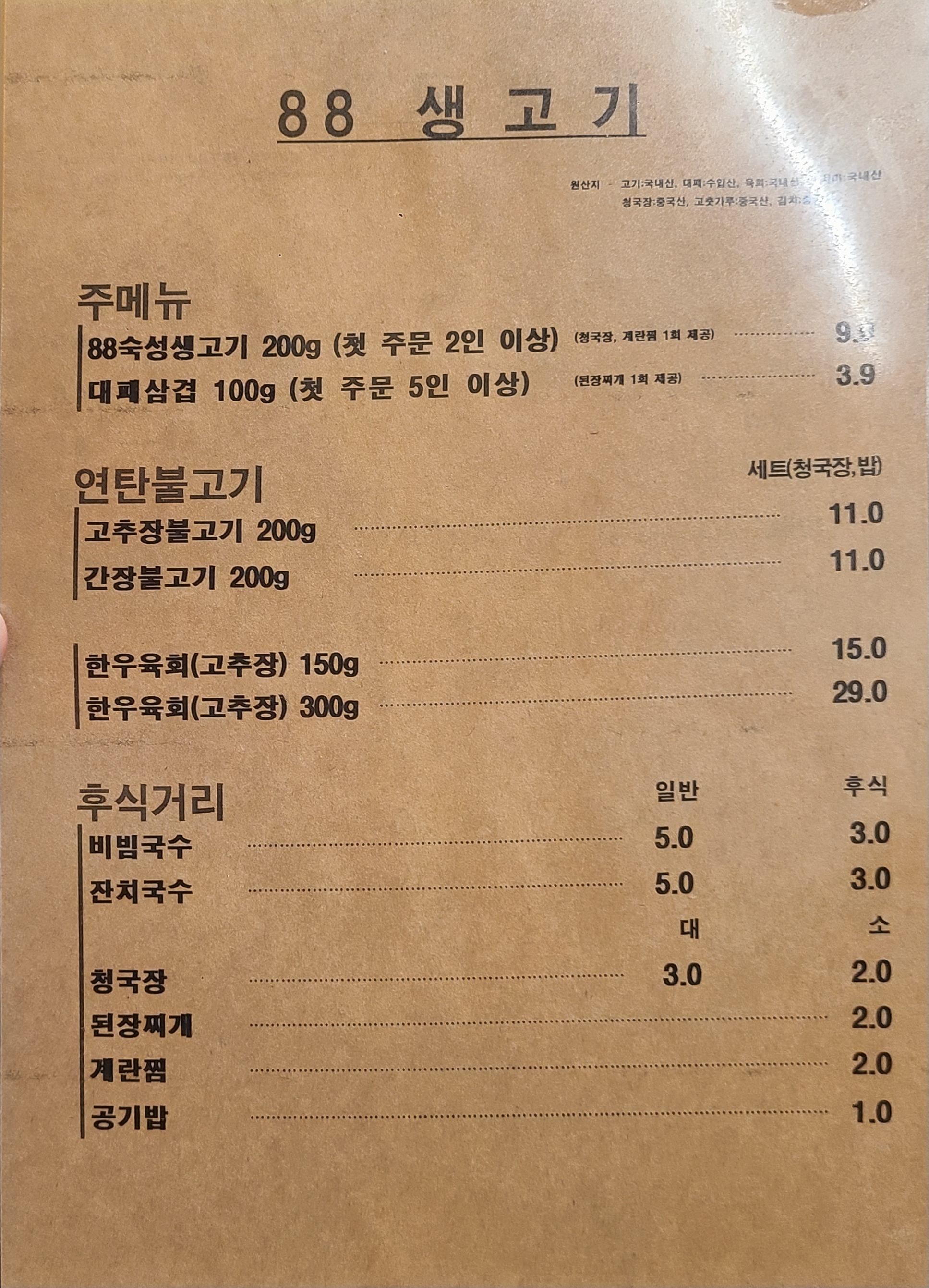 단체로 모임하는 자리여서 88생고기를 시켰습니다.
