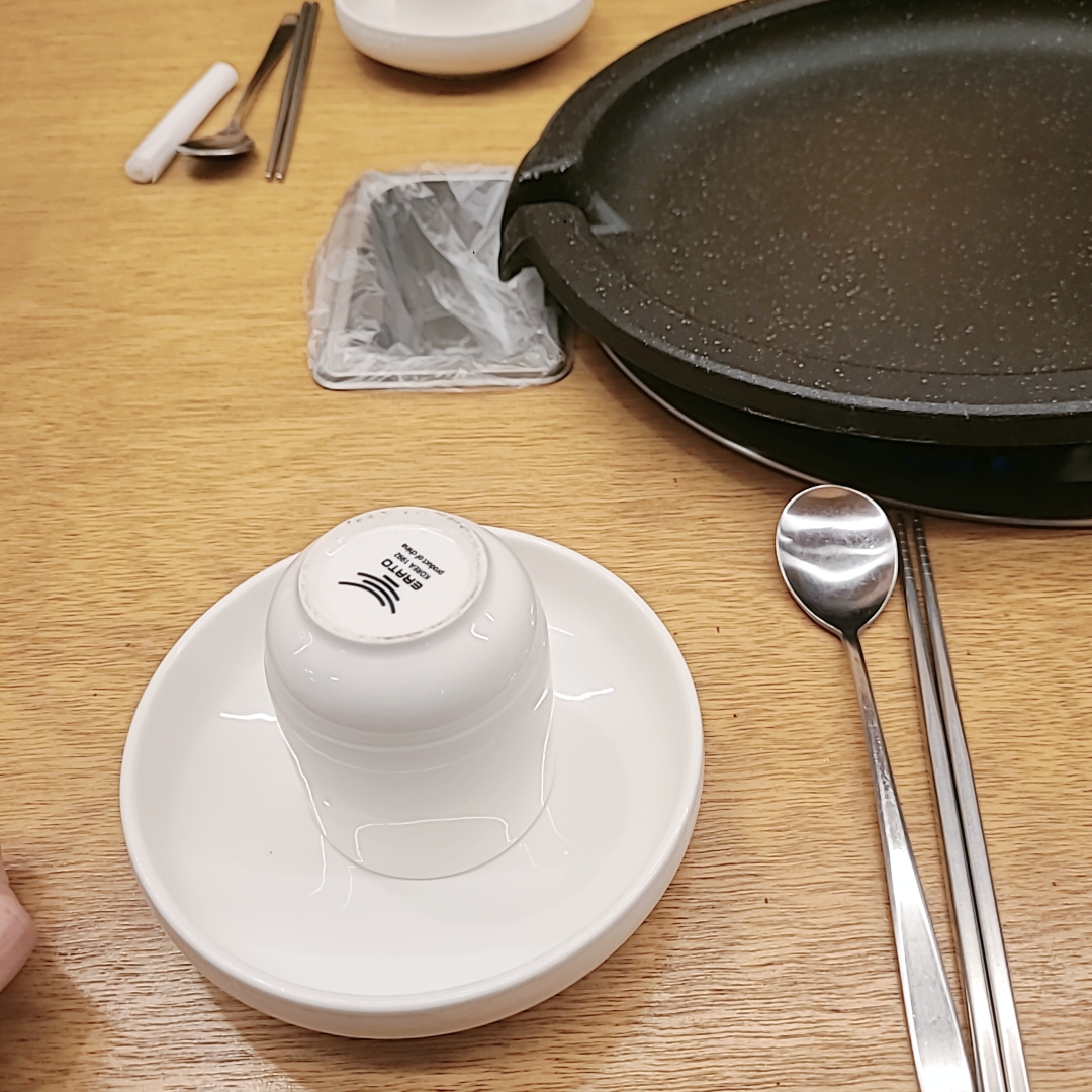 예약을 해두고 가서 앞접시와 컵이 세팅되어있었습니다.