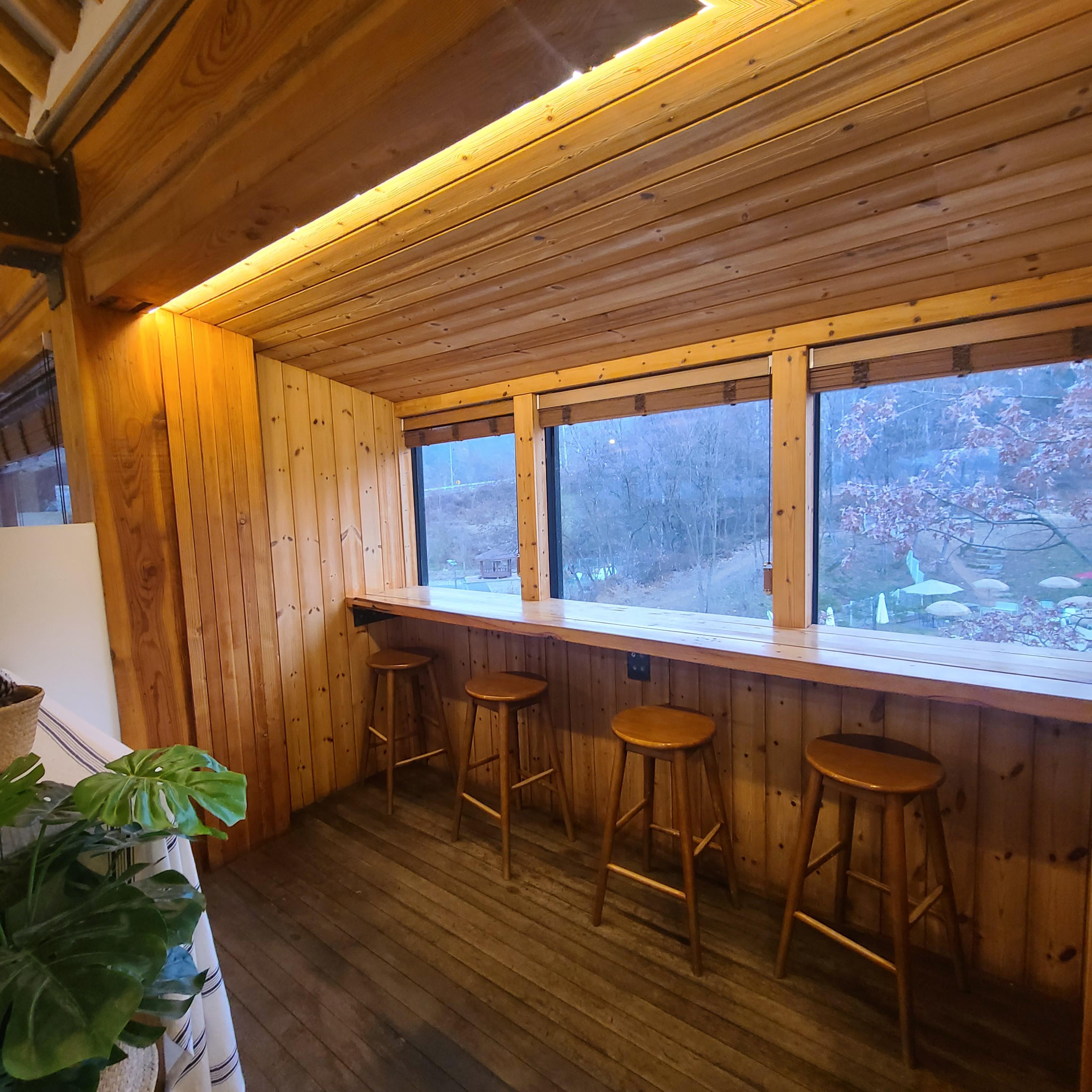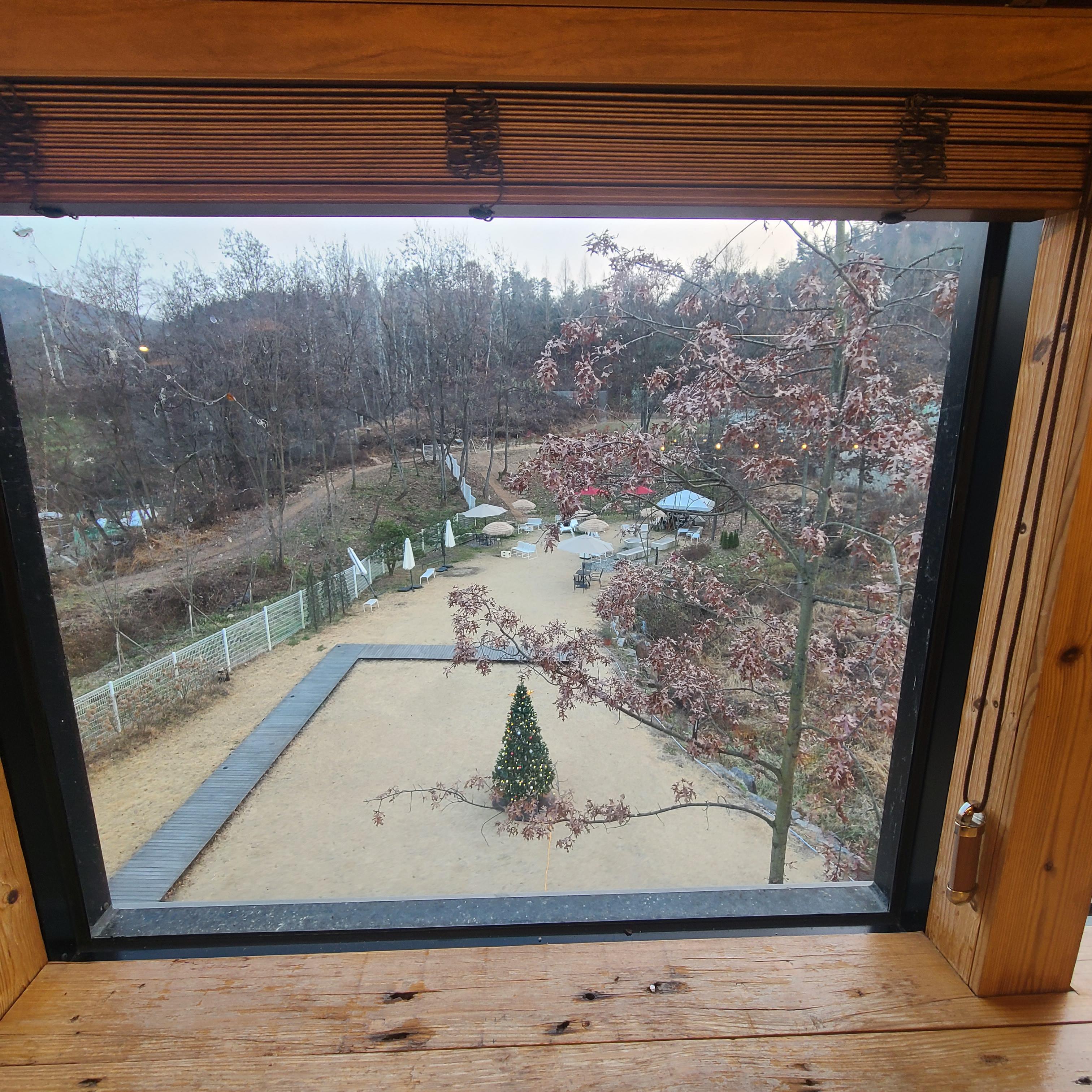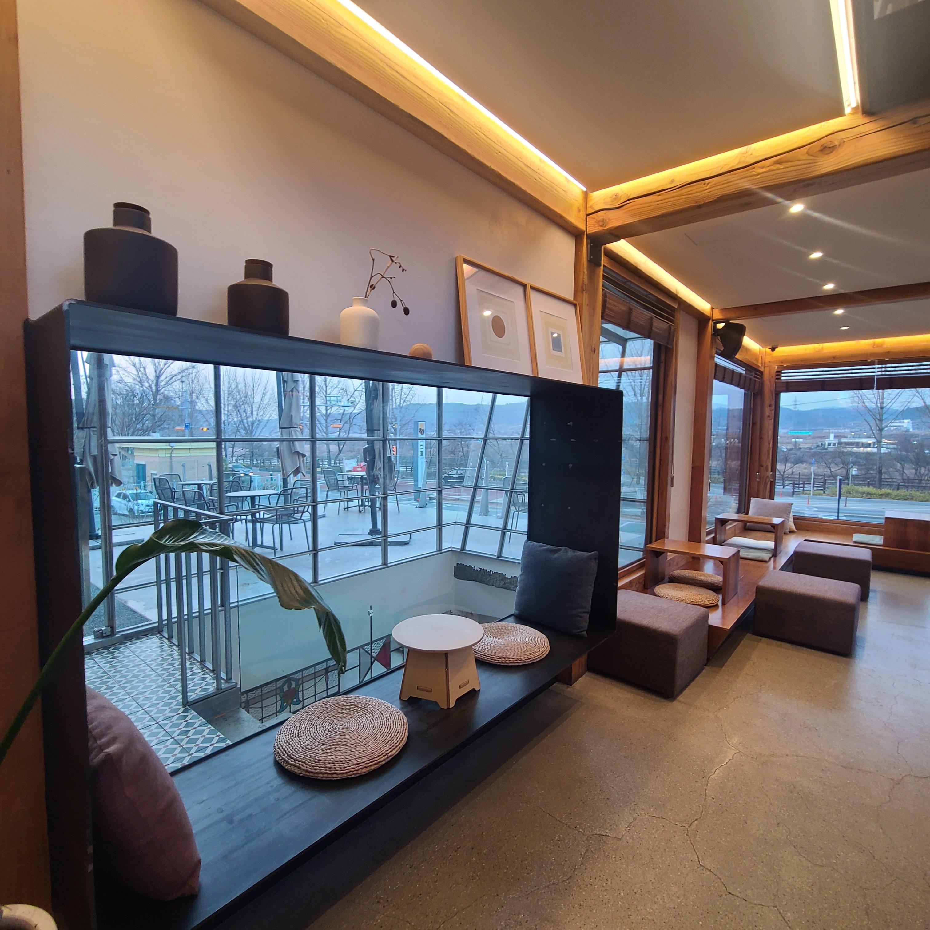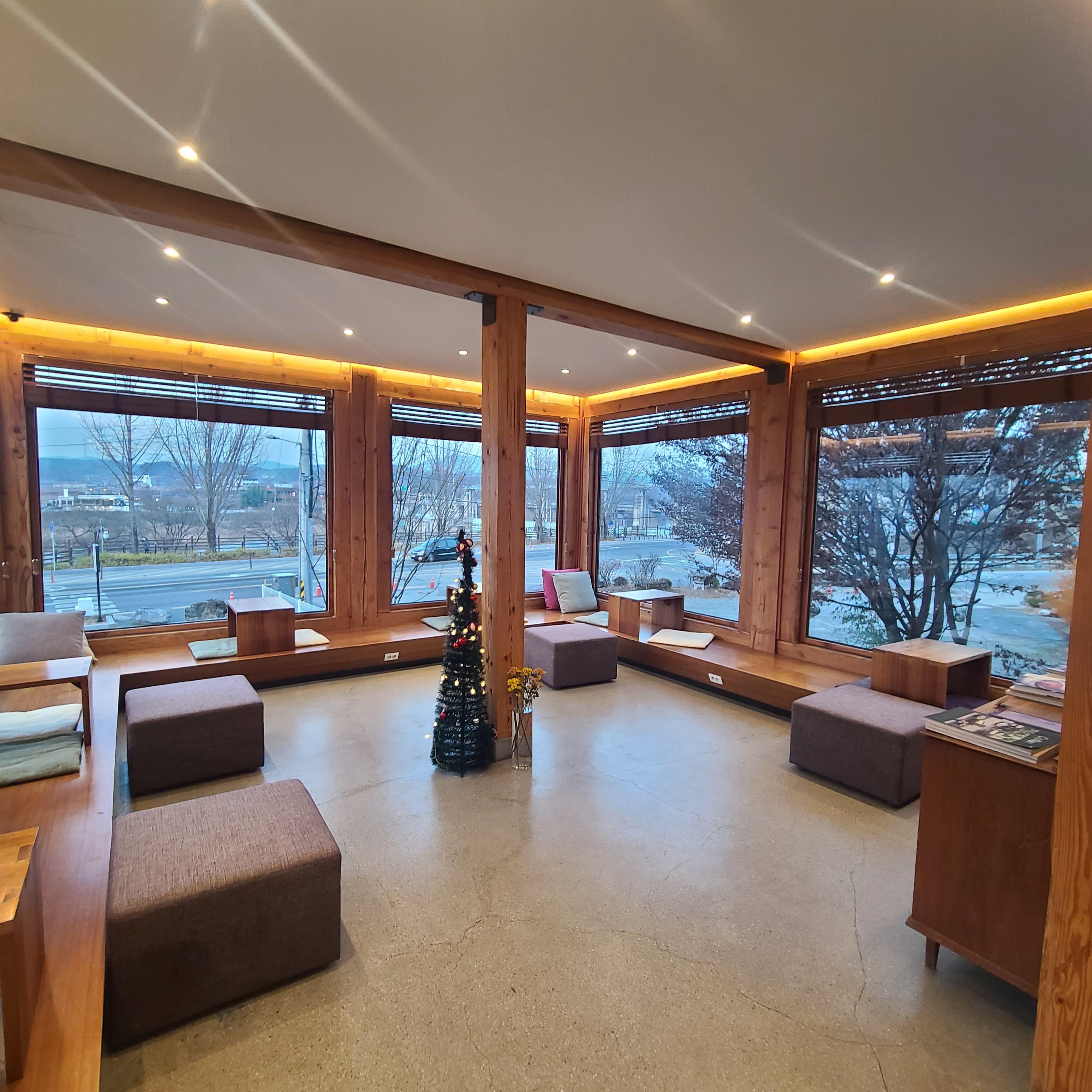 사진중에 창 밖을 바라보는 자리도 있는데요. 저기에선 마당쪽을 바라보고 여유를 즐길 수 있습니다.