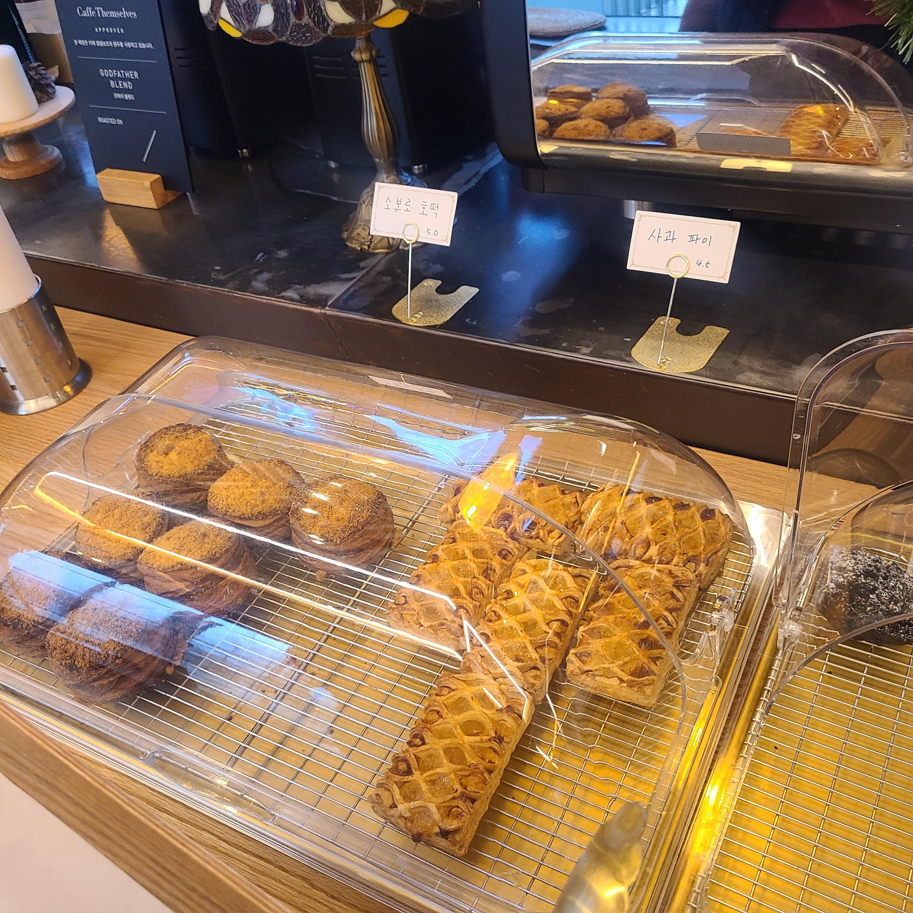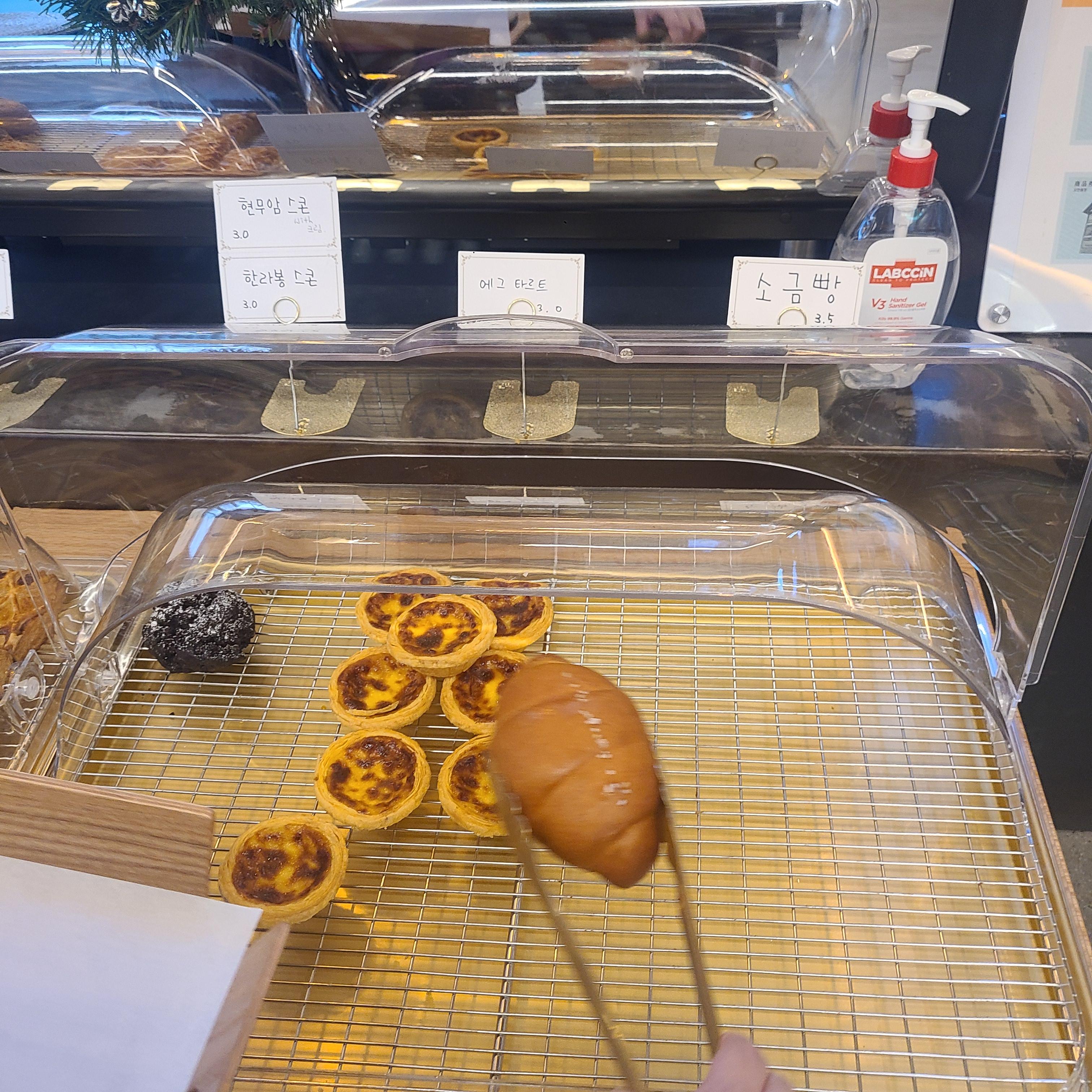 그 외에도 빵을 파는데요. 맨 왼쪽의 소보로호떡과 마지막남은 맨 오른쪽 소금빵을 추가로 주문했습니다.