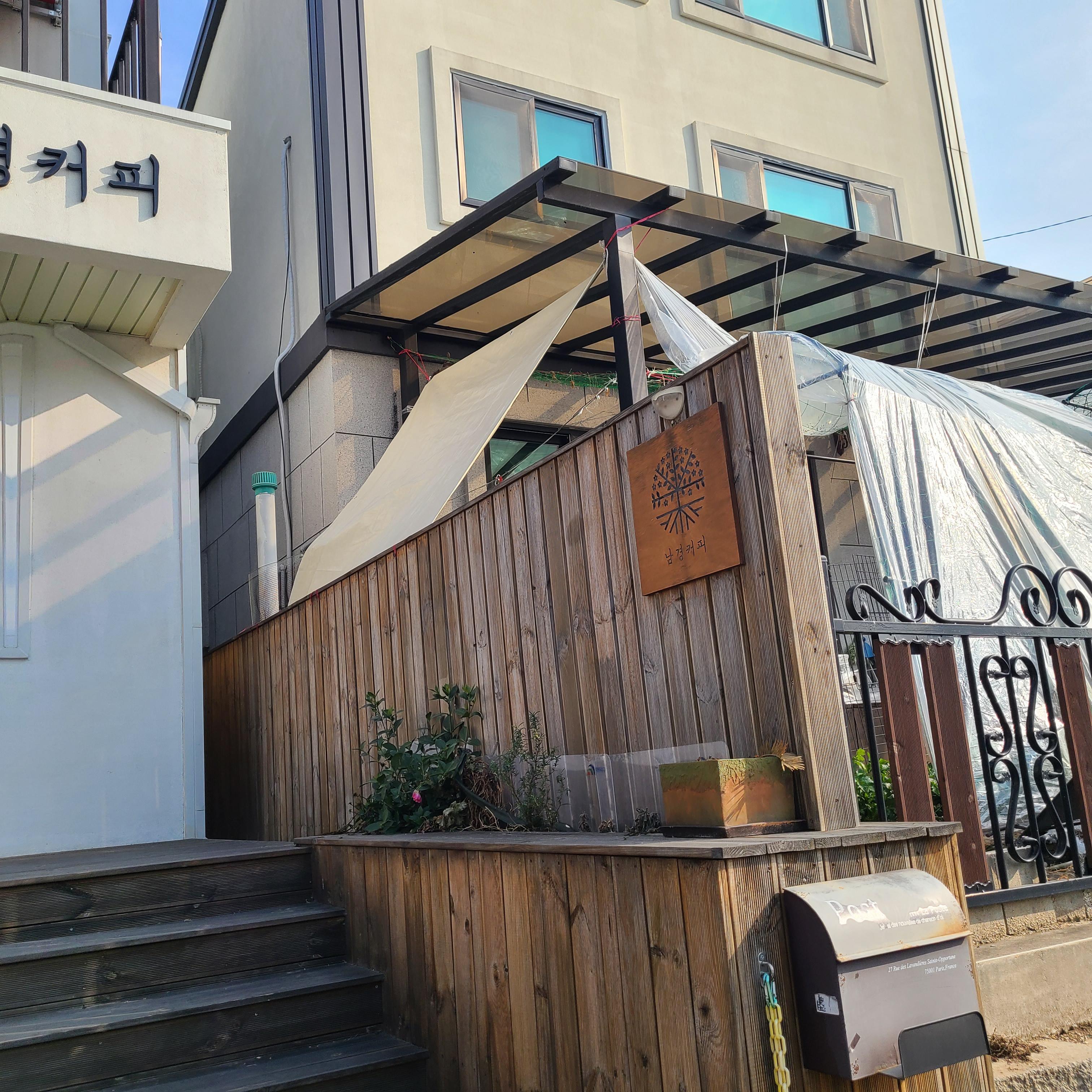 남경커피 테라스엔 햇볕이 잘 드는게, 1층에 있는 앞마당과 비슷하게 날씨 좋은 봄가을엔 인기가 많겠어요.
