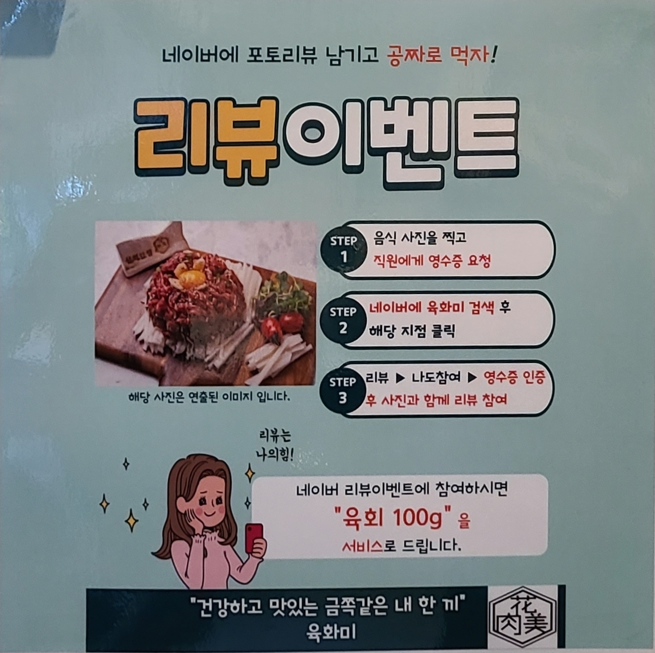 그것으로 끝나는게 아니고, 리뷰이벤트를 통해 육회까지 서비스로 받았습니다.