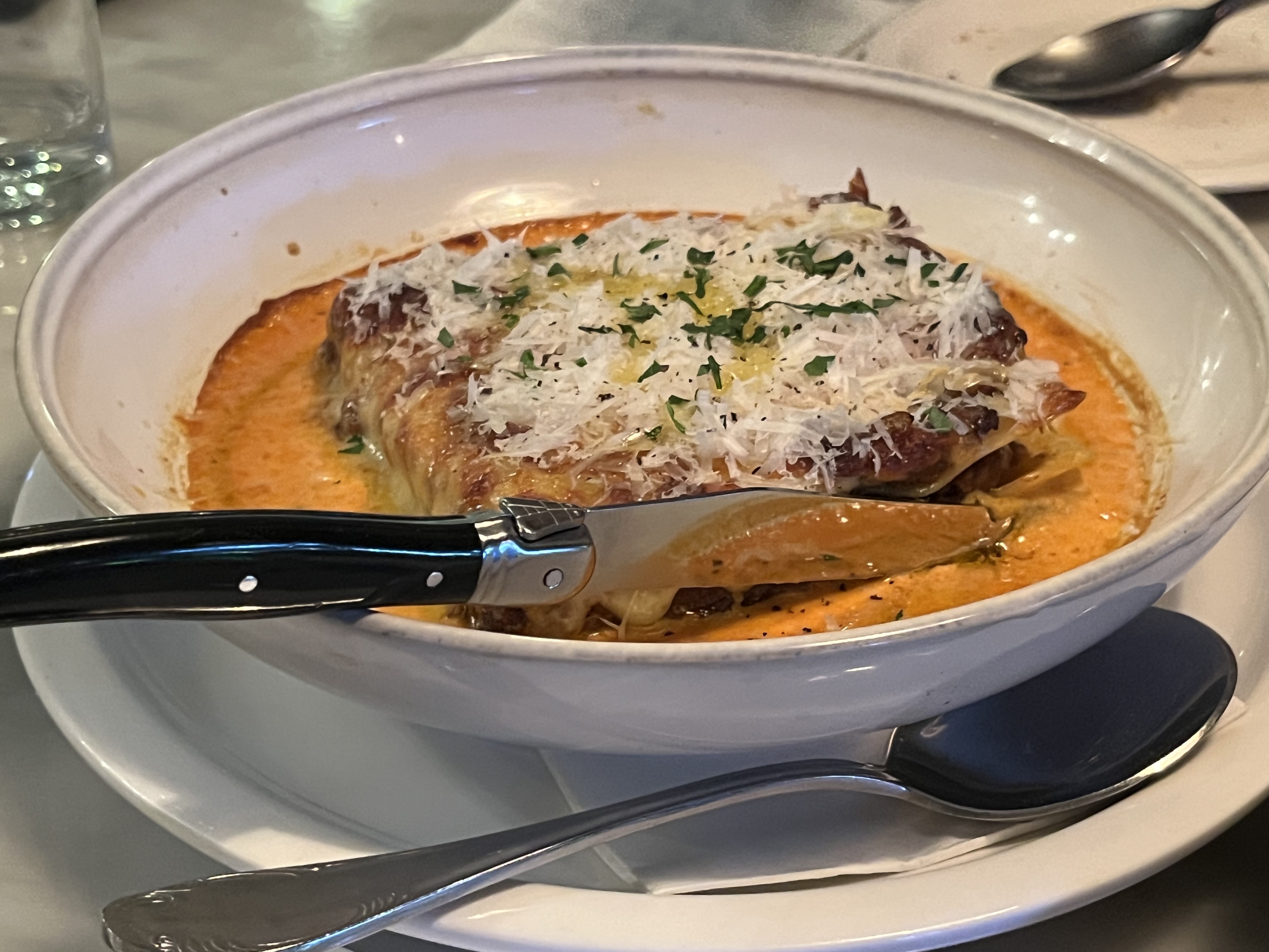 라자냐도 저는 처음 맛봤는데요, 보기엔 작아보이지만 칼이랑 스푼이 작은게 아니에요.