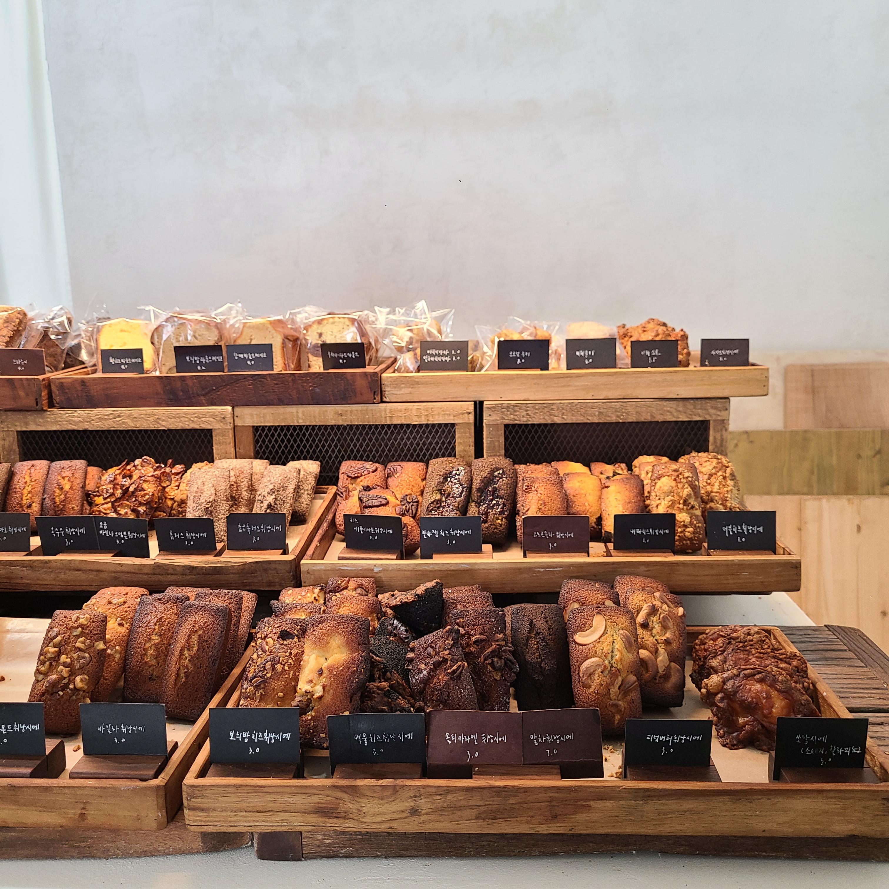 종류는 크게 휘낭시에 / 마들렌 / 케이크 (feat. 소금빵, 까눌레) 이렇게 있어요.