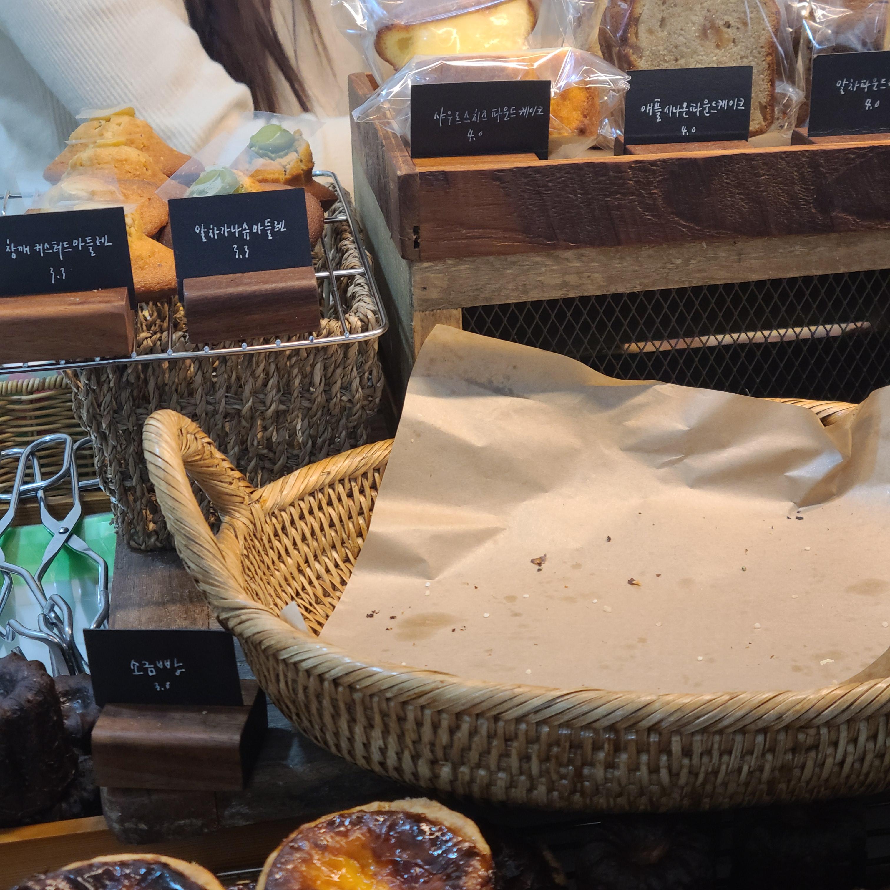 일요일 12시10분에 찾아갔는데, 소금빵은 이미 매진이었고, 인기있는 휘낭시에도 마찬가지로 품절이었으니까요.