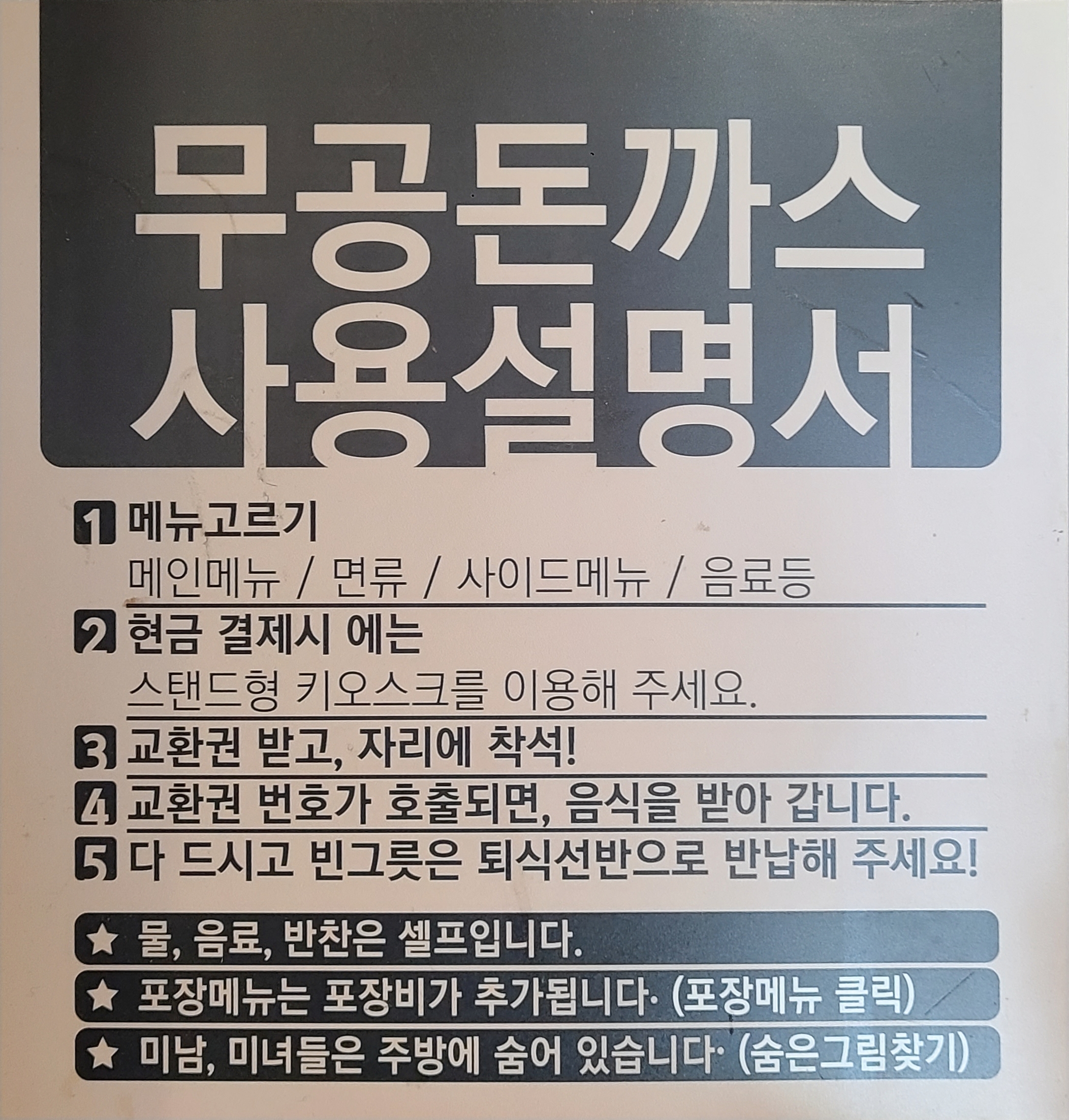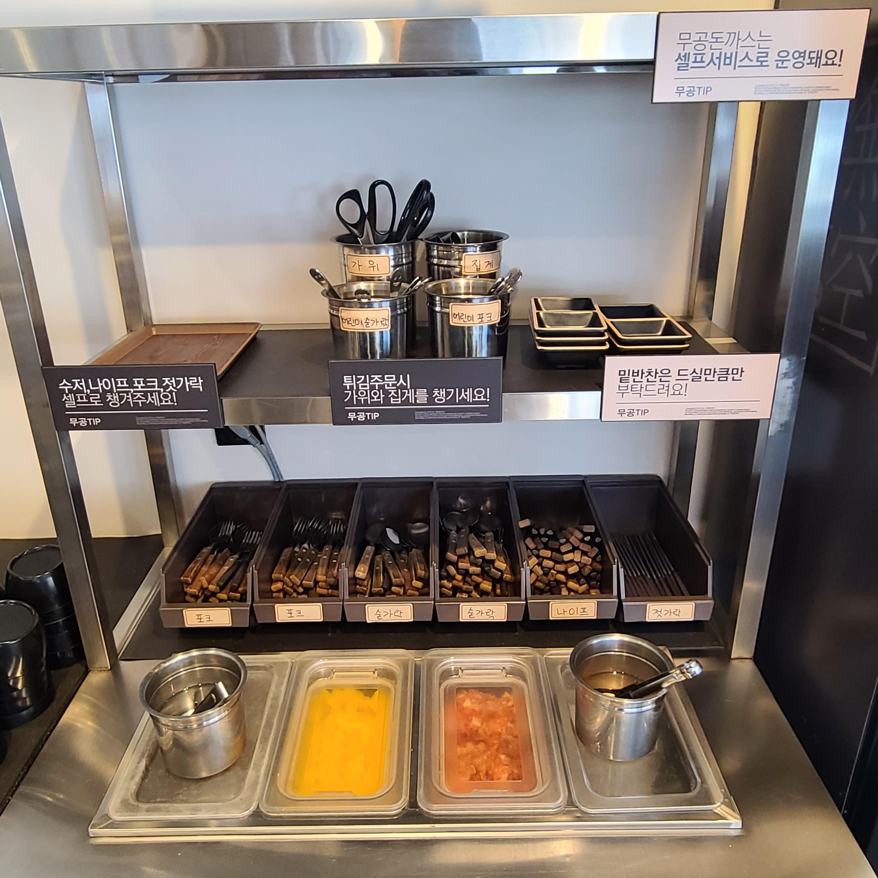무공돈까스 셀프바 벽엔 이렇게 친절한 정보들이 있었습니다.