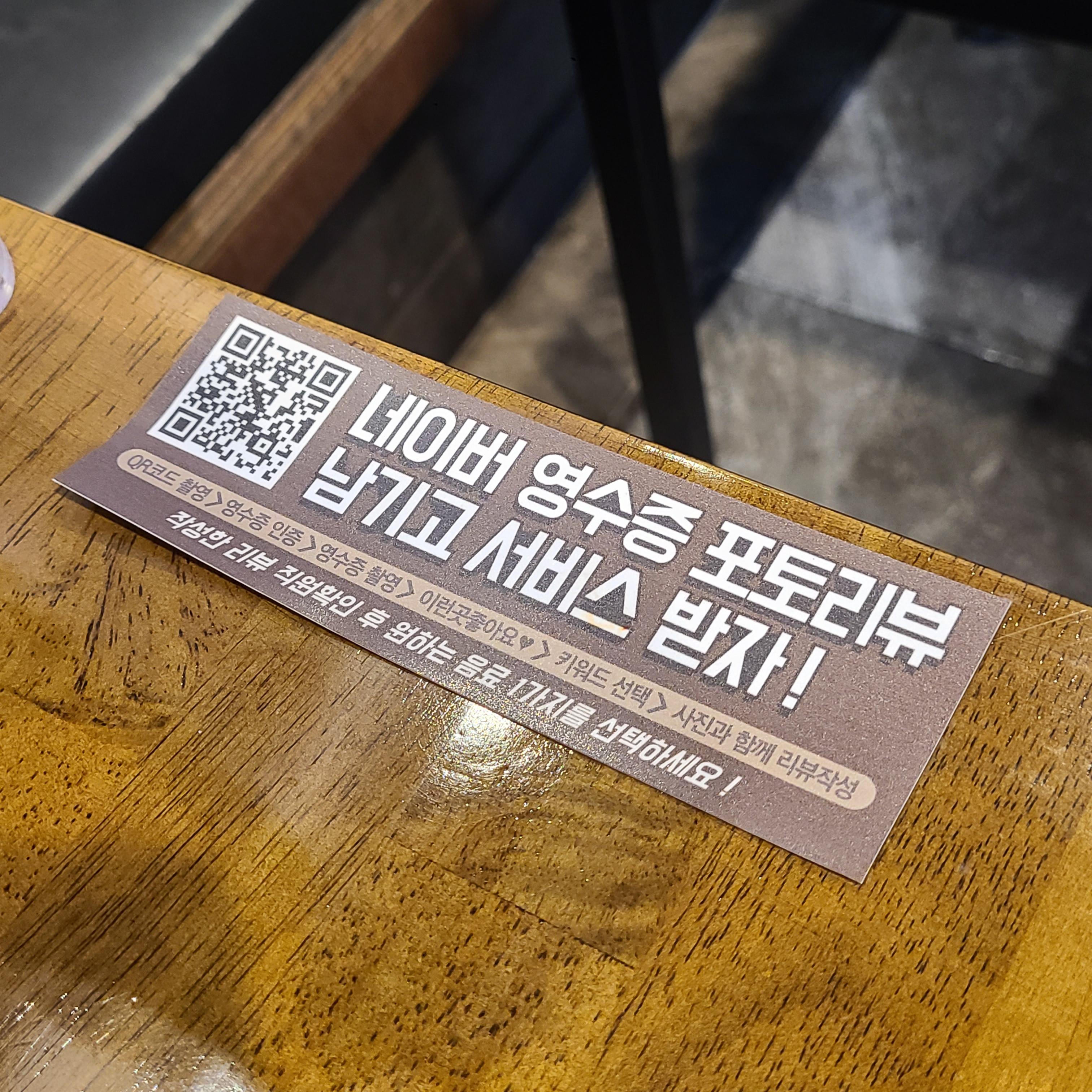 영수증 포토리뷰 이벤트가 진행중입니다. 서비스로 음료수를 받을 수 있습니다.