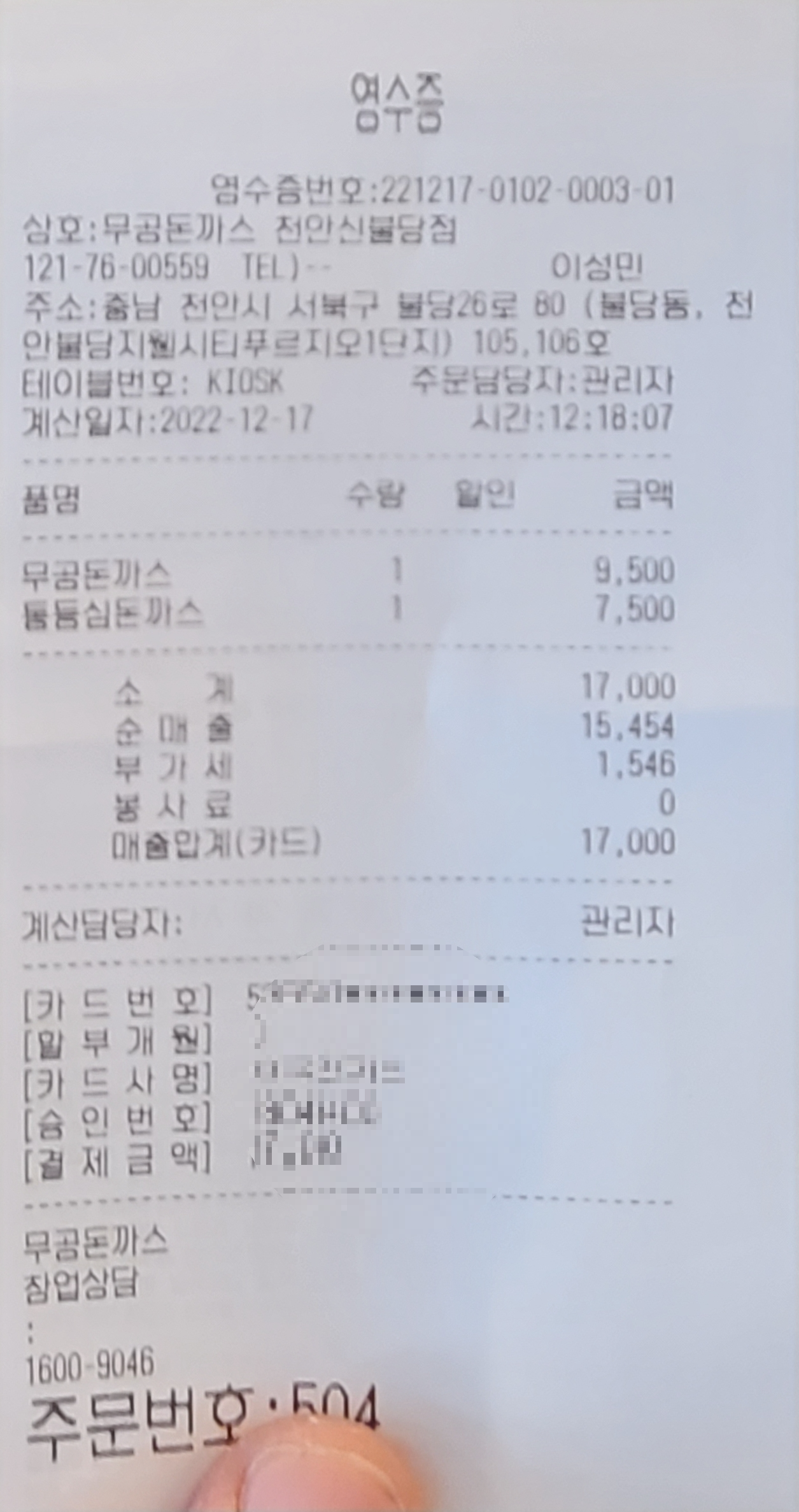 영수증 촬영하고 금방 올리니, 방문하신다면 참고하세요!