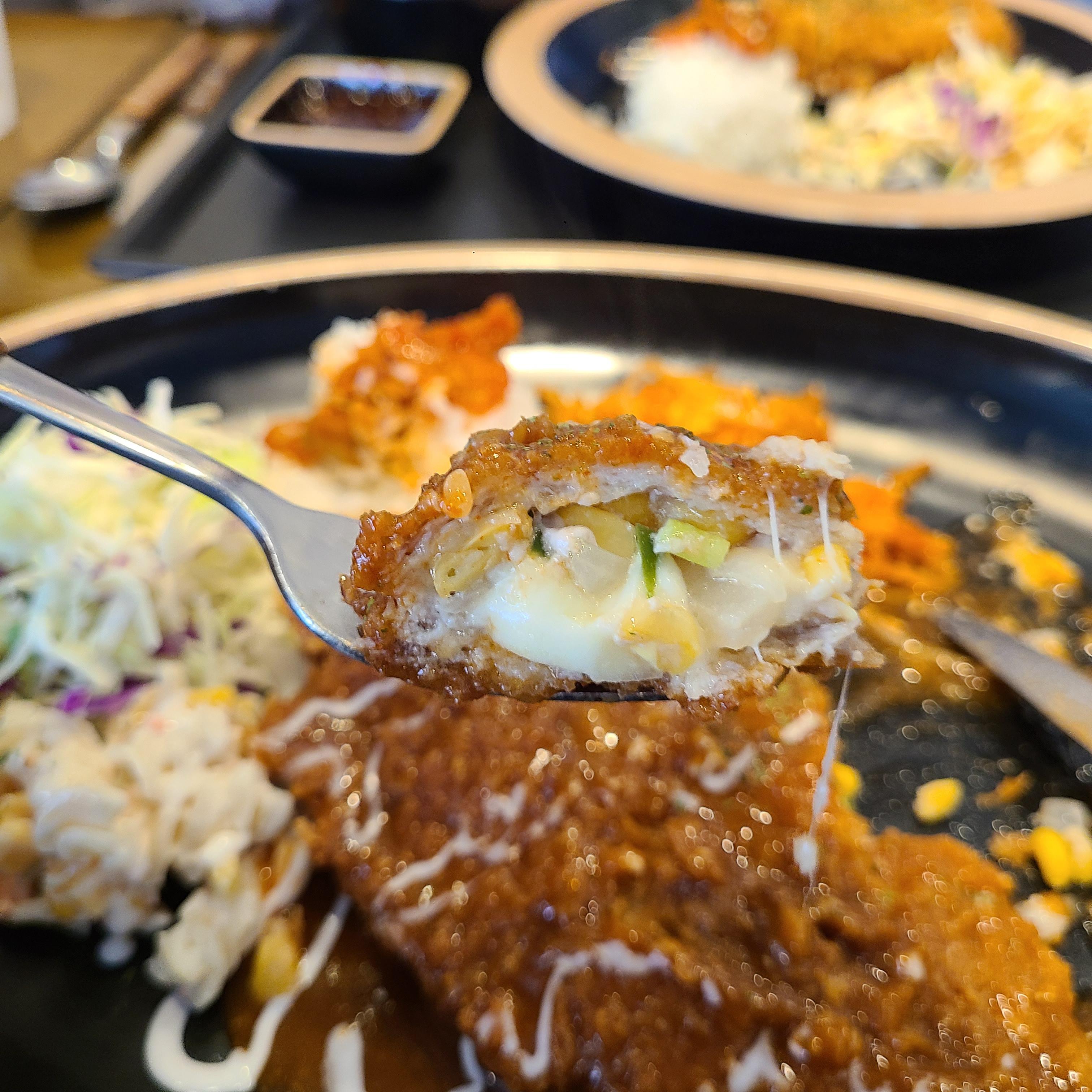 무공돈까스 속은 고기 말고도 샌드위치 속재료같은걸로 차있었어요. 그렇다고 식감이 과하게 아삭아삭한건 아니구요.