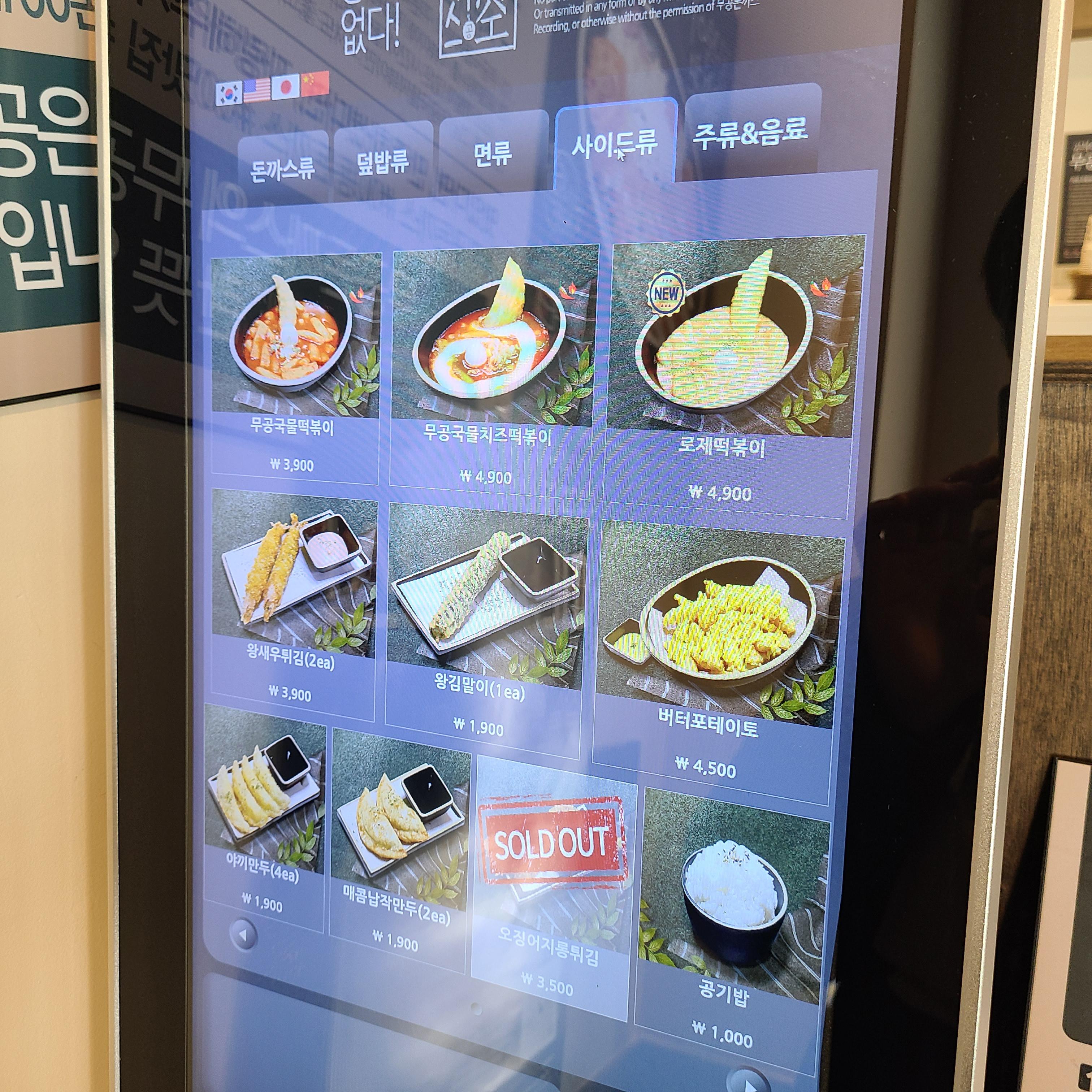 아무래도 종류가 많은건 돈까스와 면류입니다. 떡볶이와 새우튀김등이 있는 사이드도 인상적이었구요.