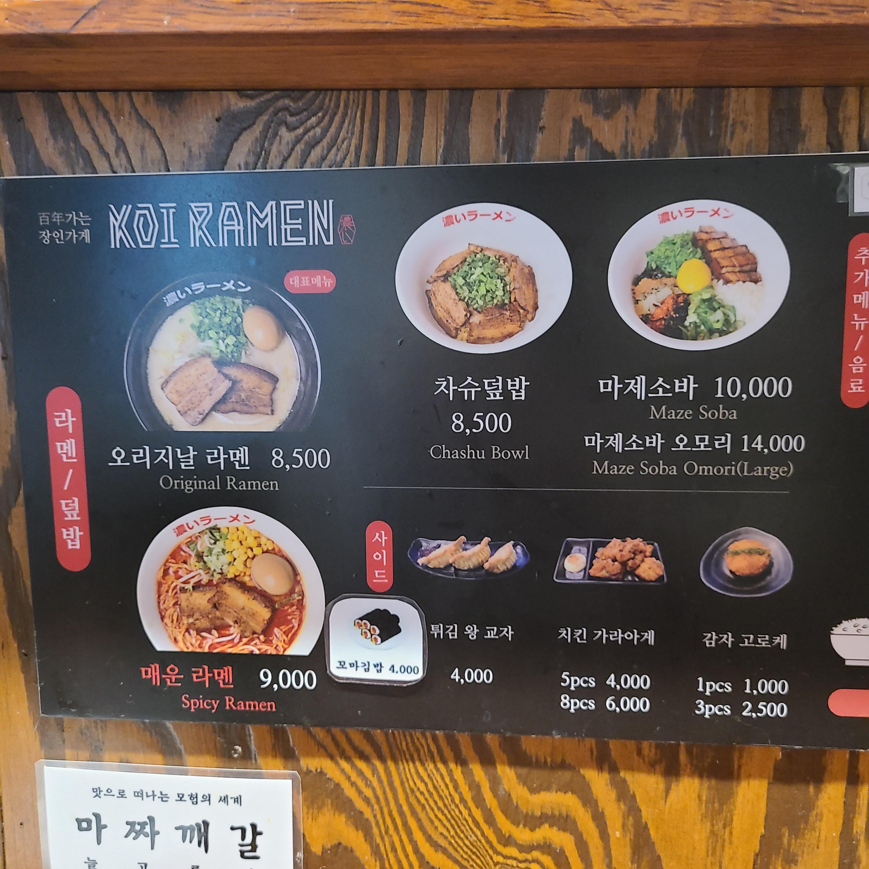 아. 참고로 간판에 코이라멘이 일본어로 쓰여있고, 우측아래에 작게 "코이라멘"이 한글로 쓰여있습니다.