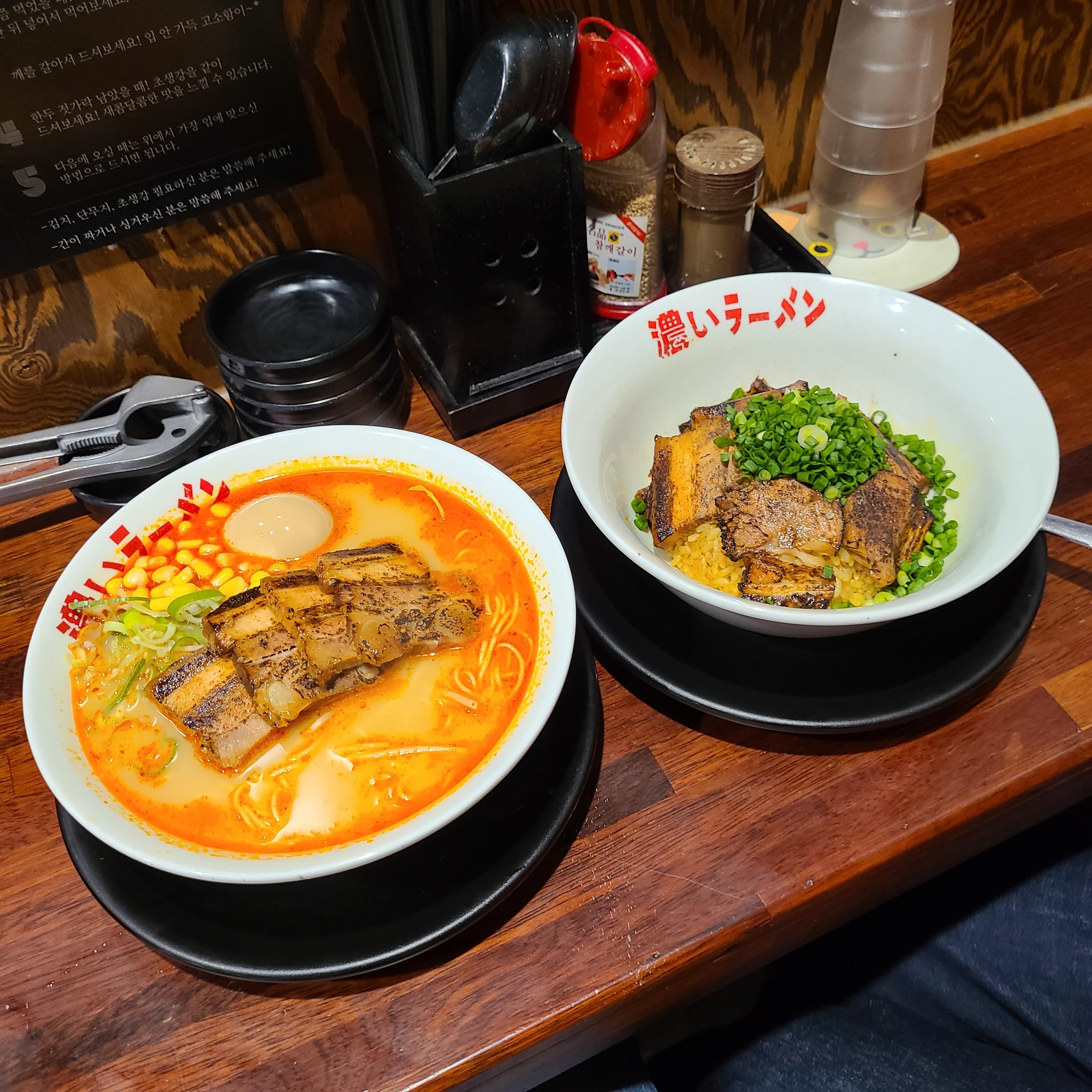 금방 나온 매운라멘과 차슈덮밥입니다.