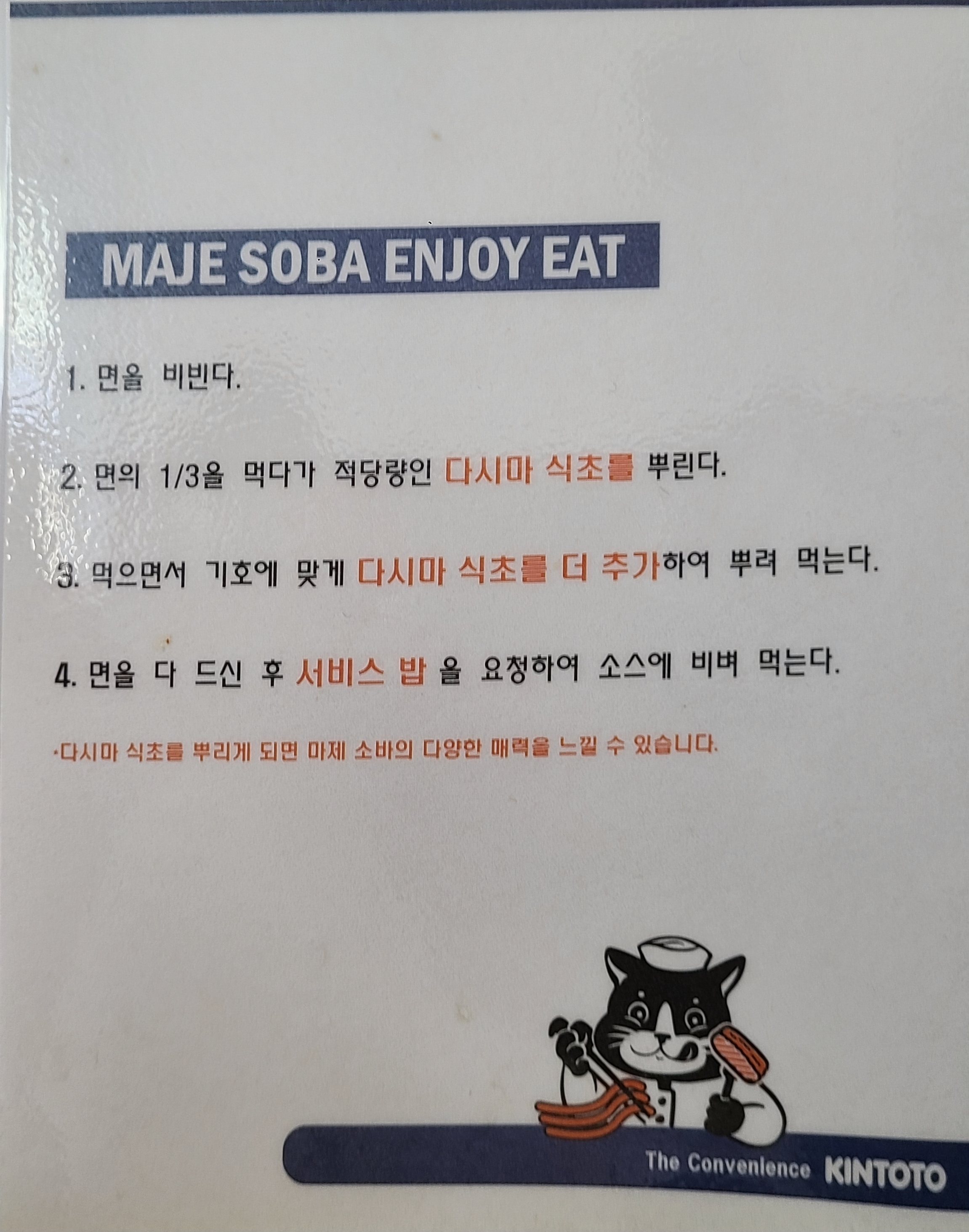마제소바 먹는 법은 사진과 같아요.
