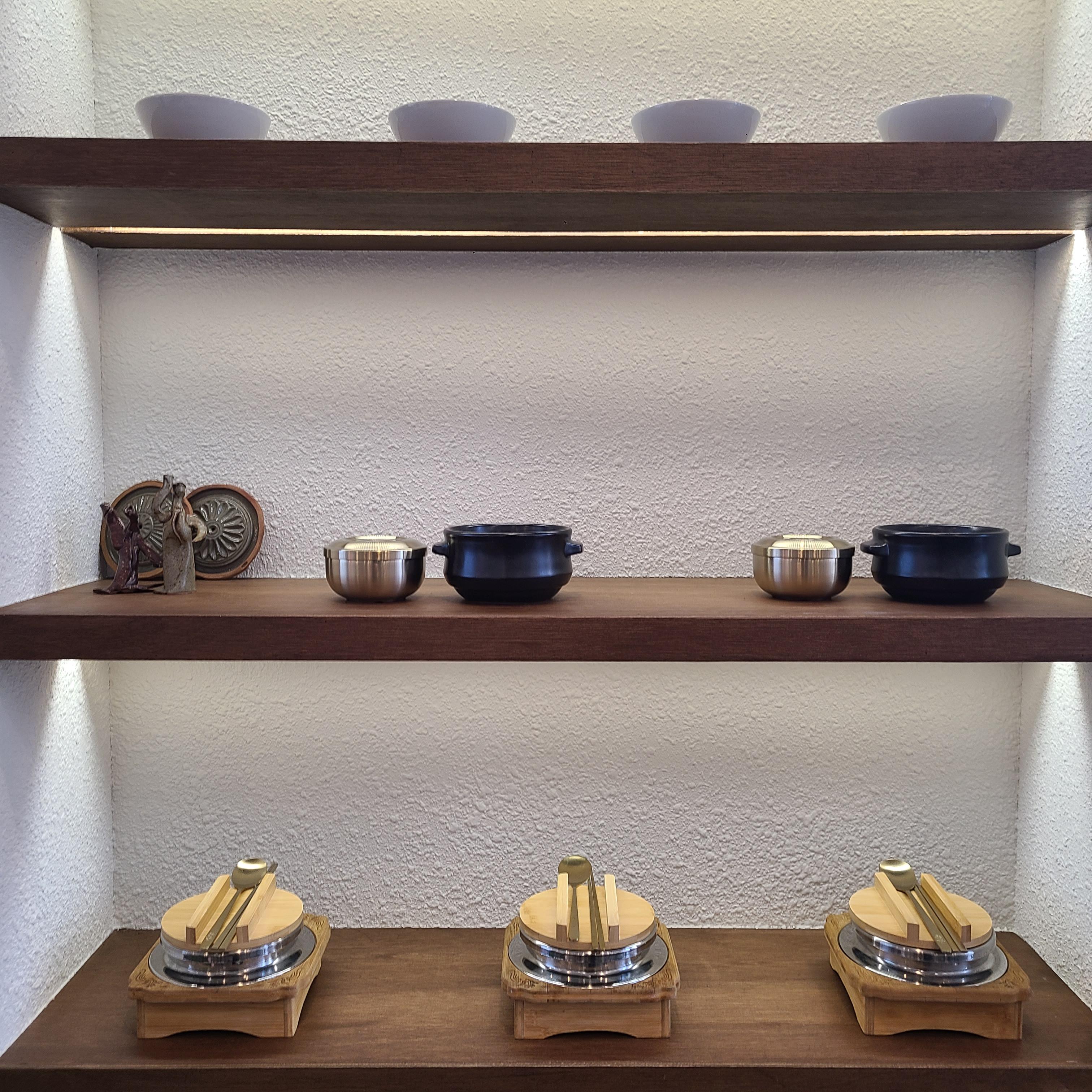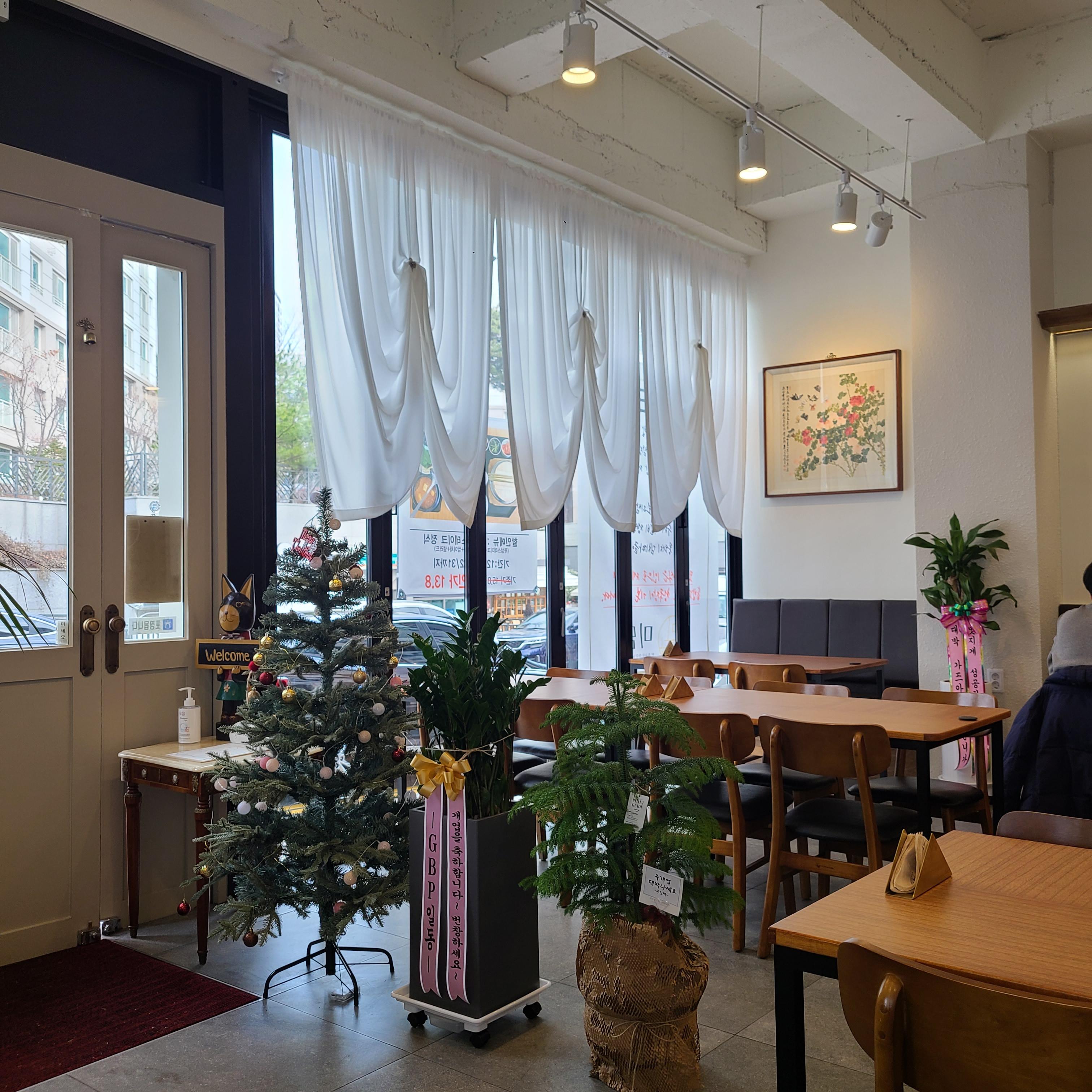 그 외에도 둥근창, 크리스마스 트리 등의 계절 데코레이션, 그릇과 뚝배기 등등 가게 내부엔 소소한 볼거리가 있었습니다. 약간은 카페같으면서도, 한국적인 멋이 느껴지는 식당같아요.