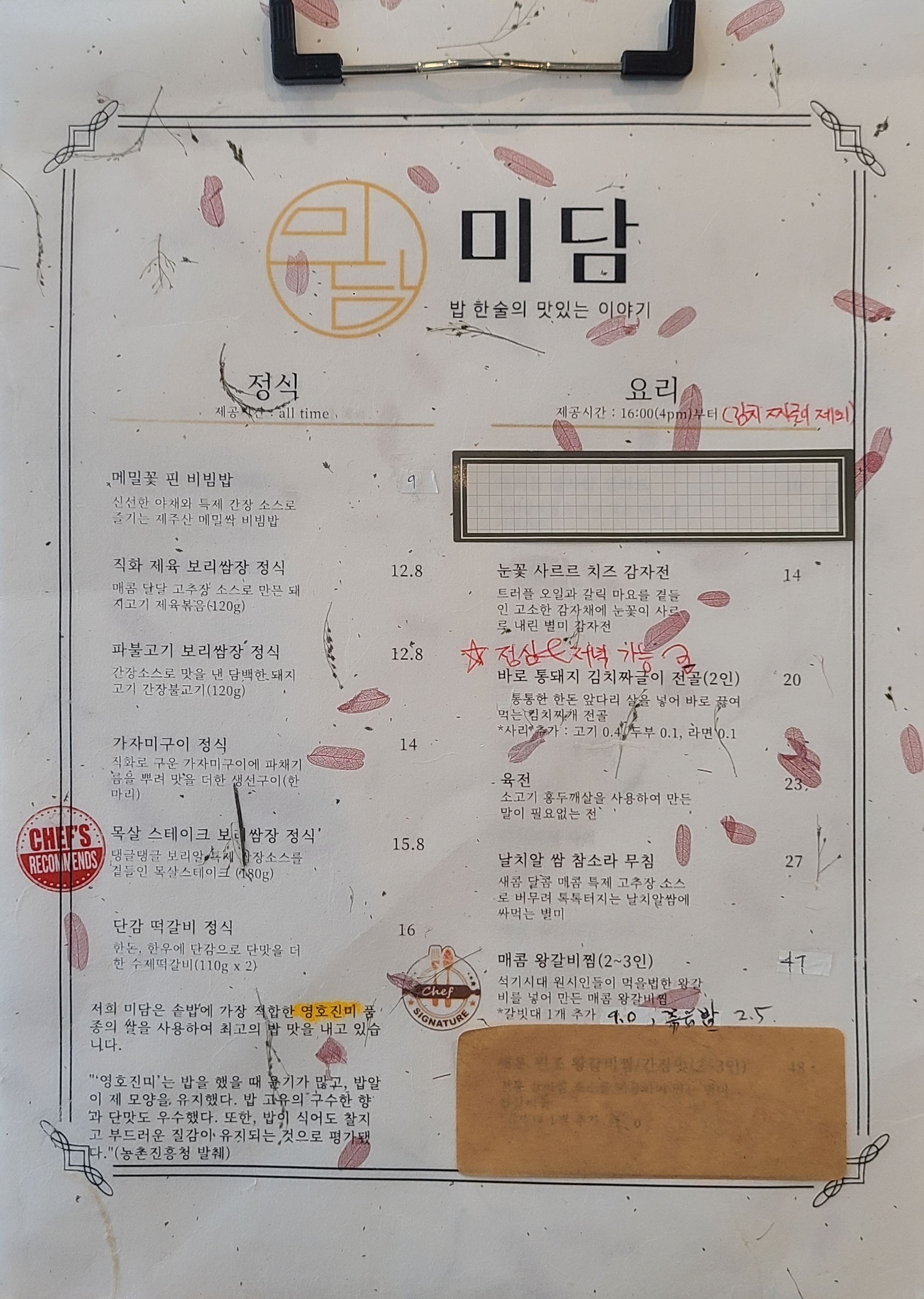 미담은 언제든 주문이 가능한 "정식"