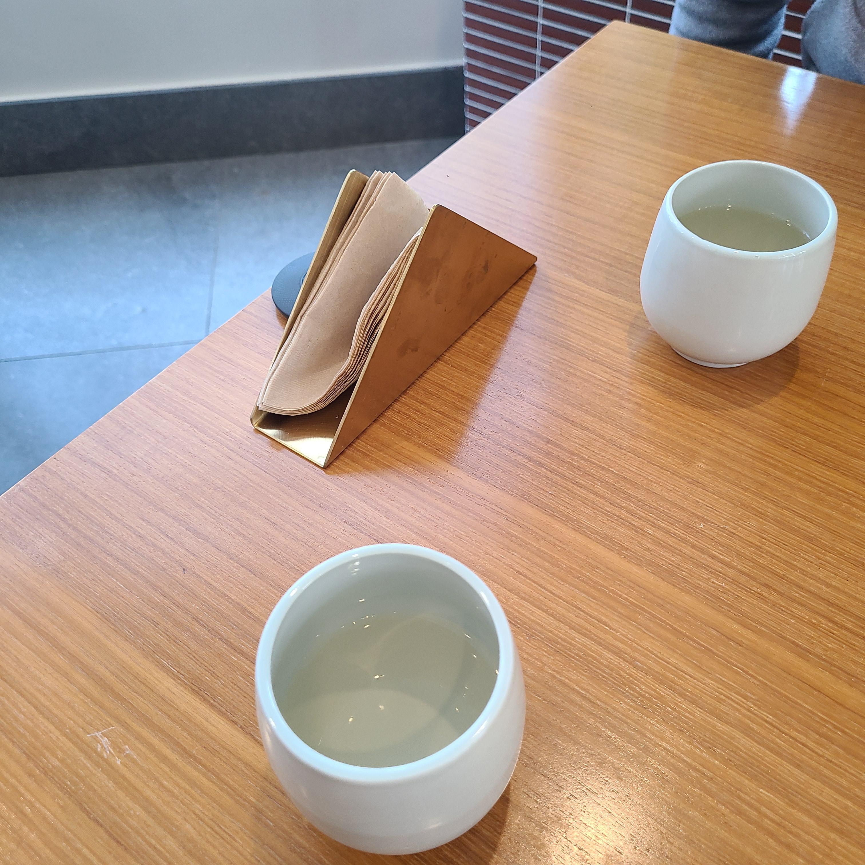 미담에선 따로 물통을 주지 않습니다. 따듯한 물을 따라주시고, 떨어지면 직접 따라주십니다.
