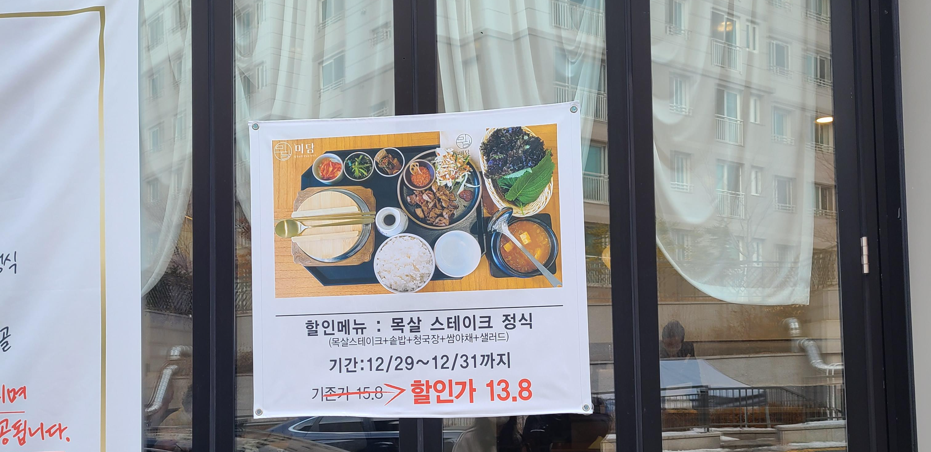 넓은 공간, 괜찮은 상차림에 착한 가격. 괜찮은 가성비 한식집으로 "미담"을 소개하고자합니다.