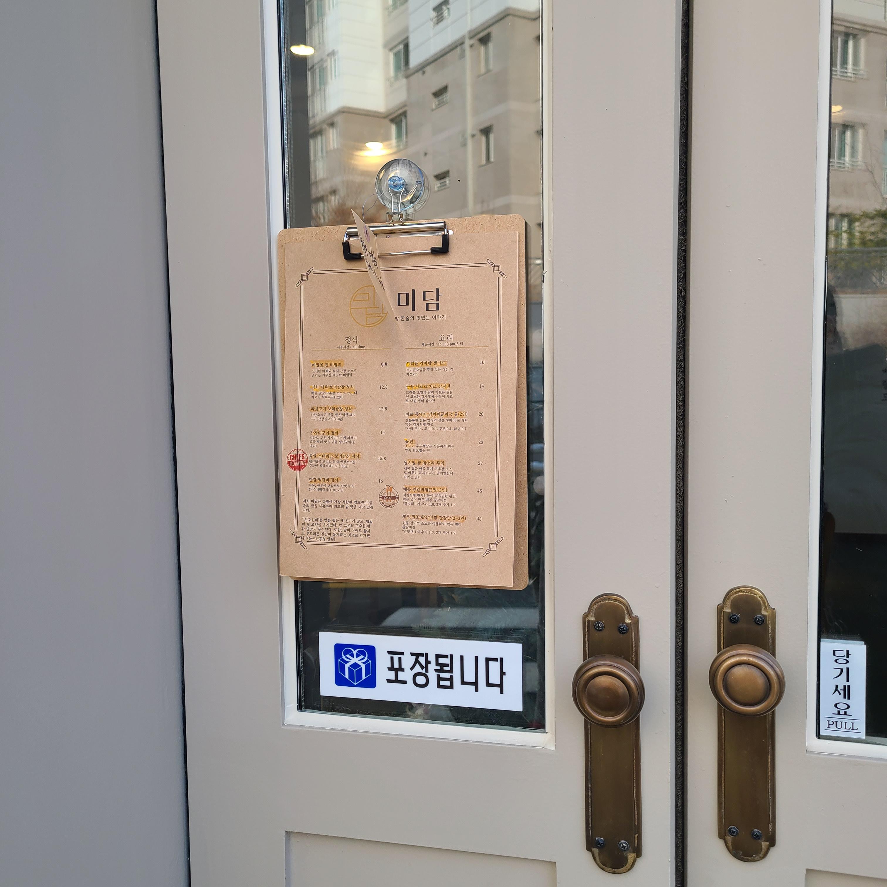 가게이름인 "미담"답게 고운 말로 손님을 맞고있었습니다.
