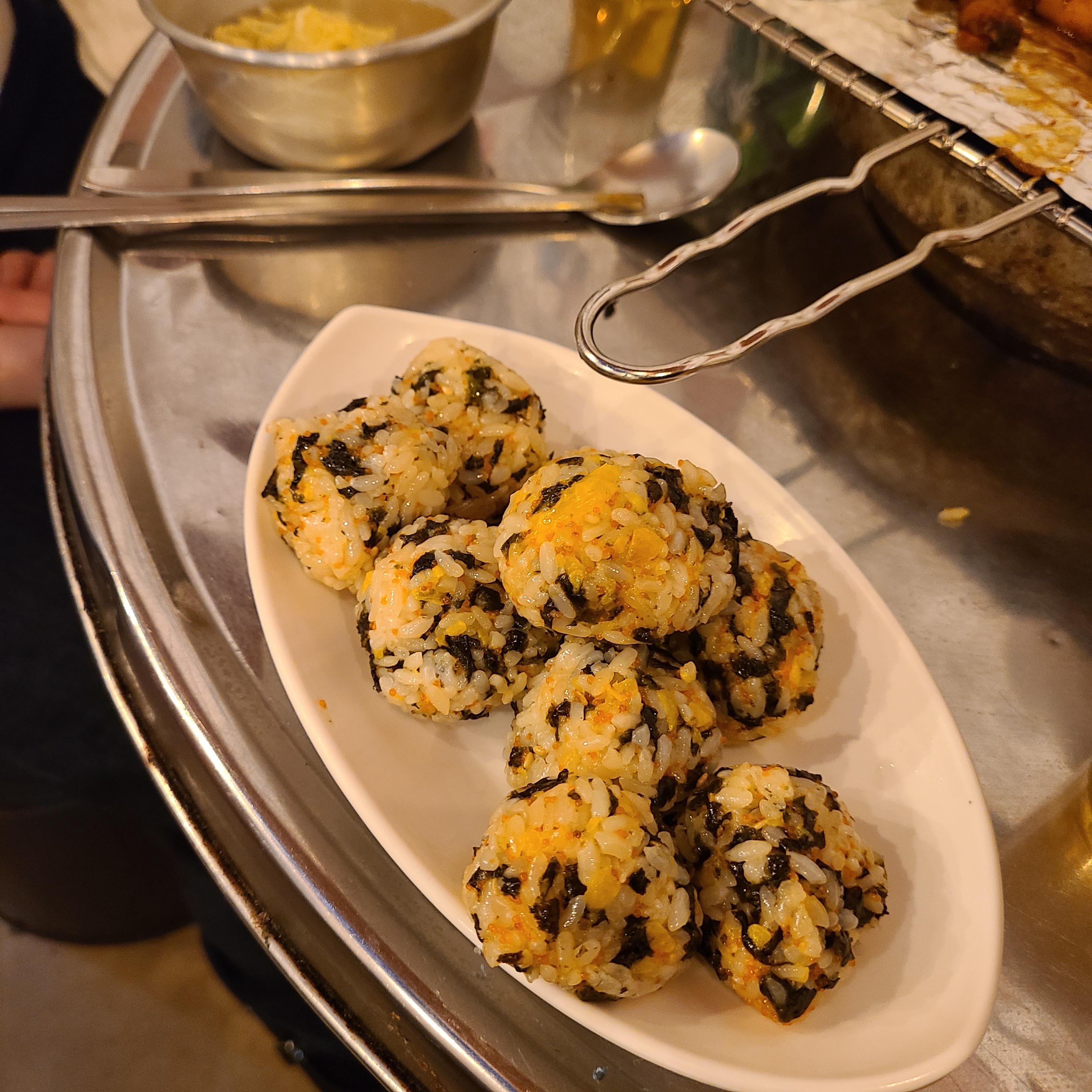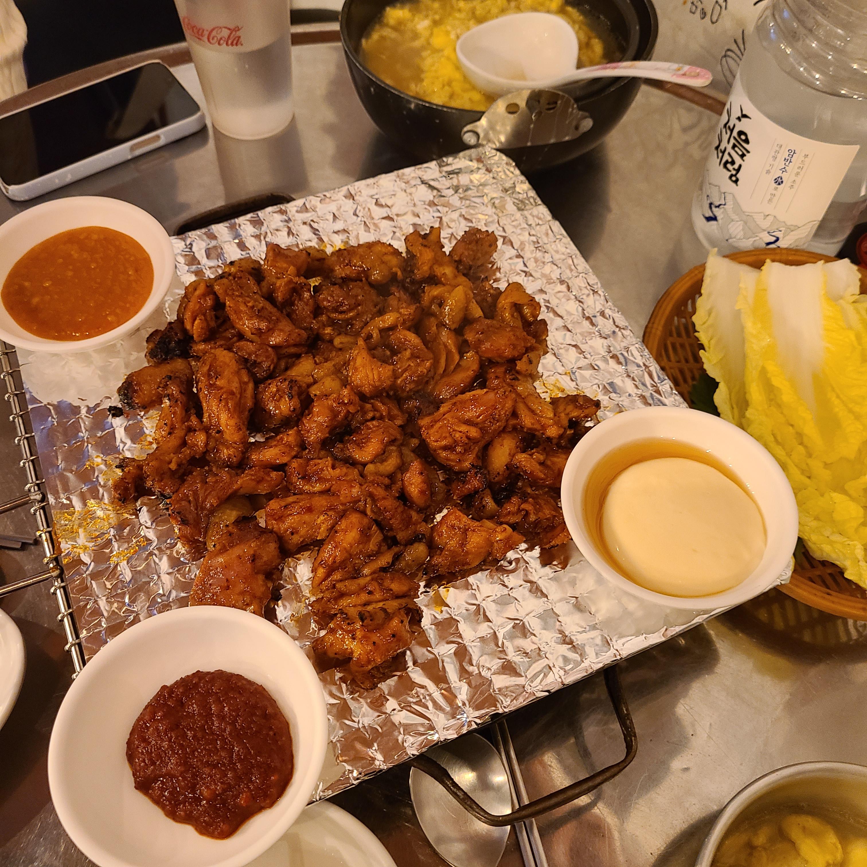 맛있고 양이 적지 않은 주먹밥과 계란찜, 그리고 숯불향부터 제대로인 닭다리살까지.