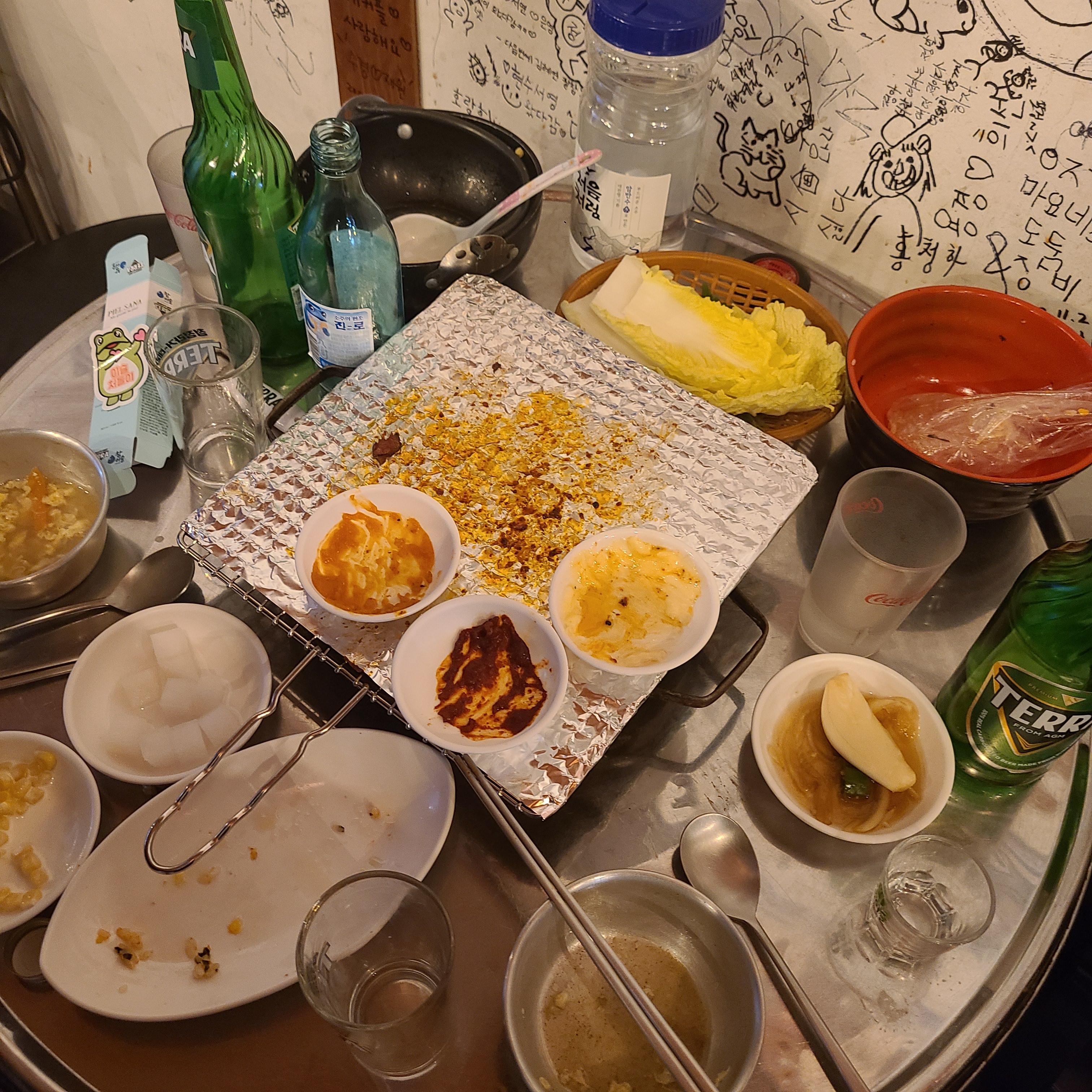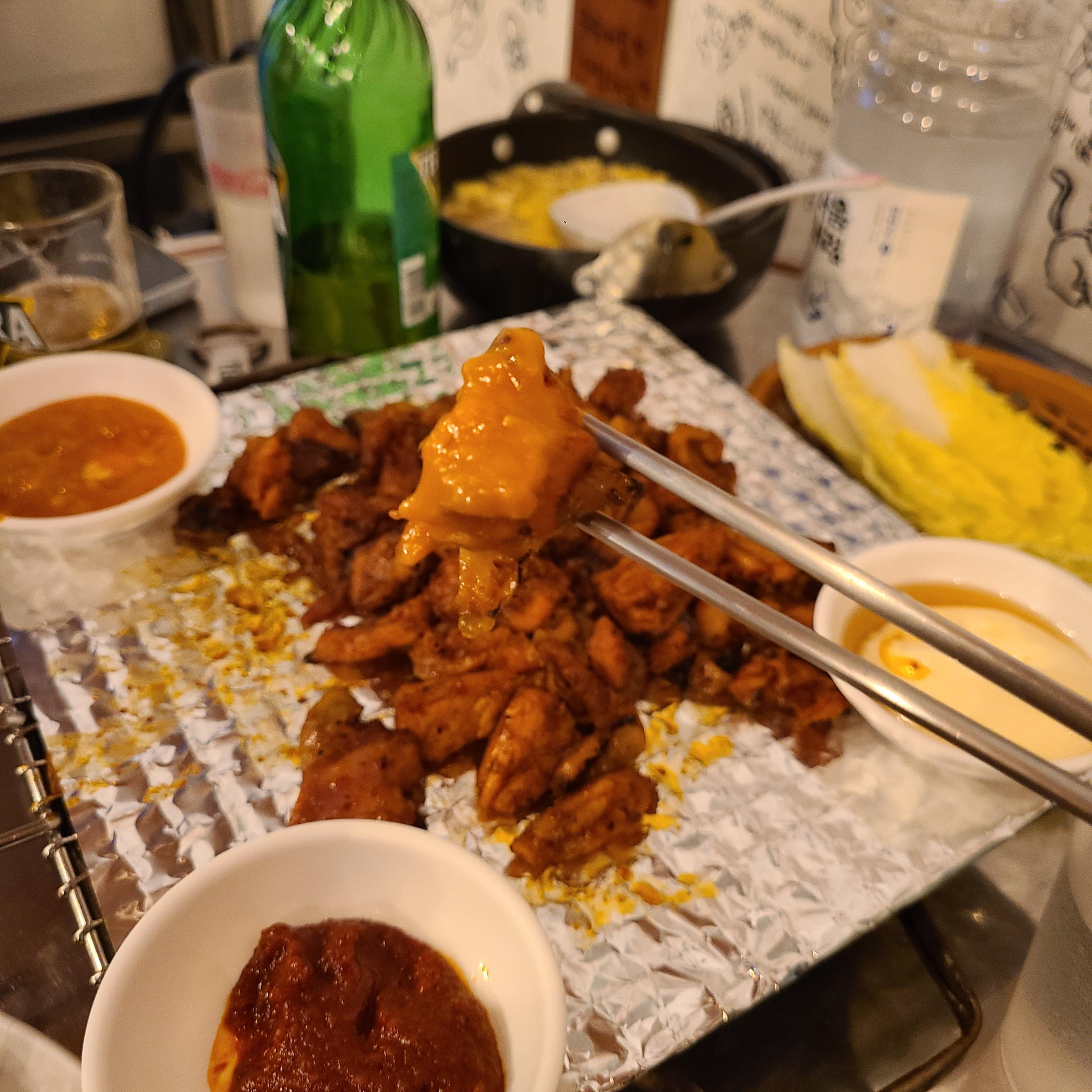 원래 목적인 고기가 아닌 꼼장어에 소주한잔이 더 끌렸지만, 참았습니다