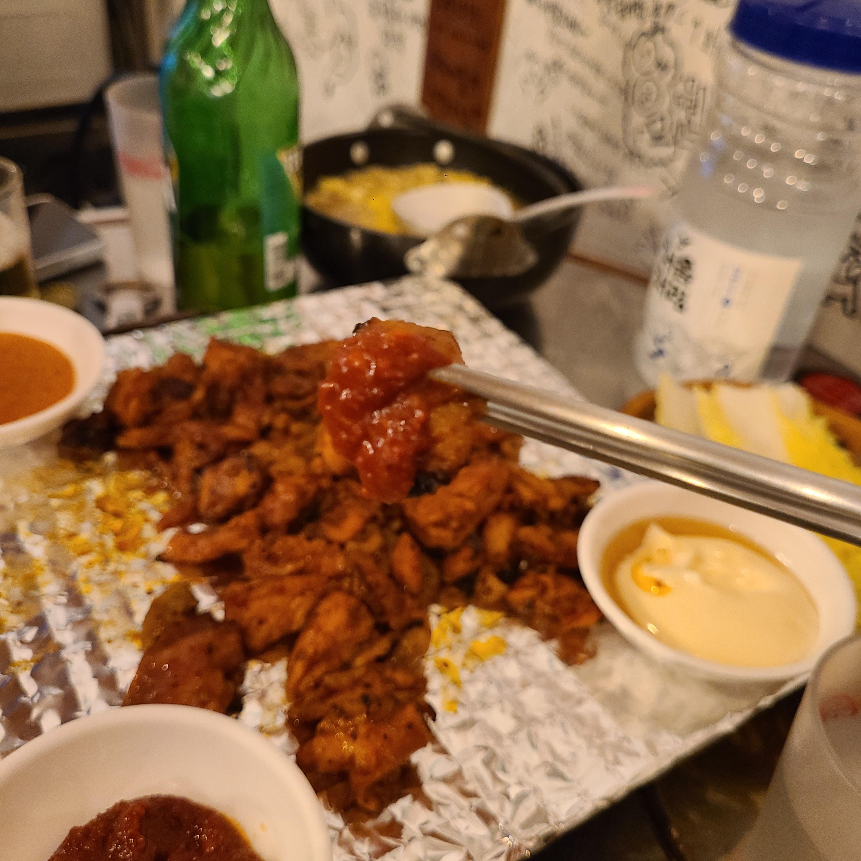 닭에 어울리는 소스를 다 가져다놓으셨네요.
