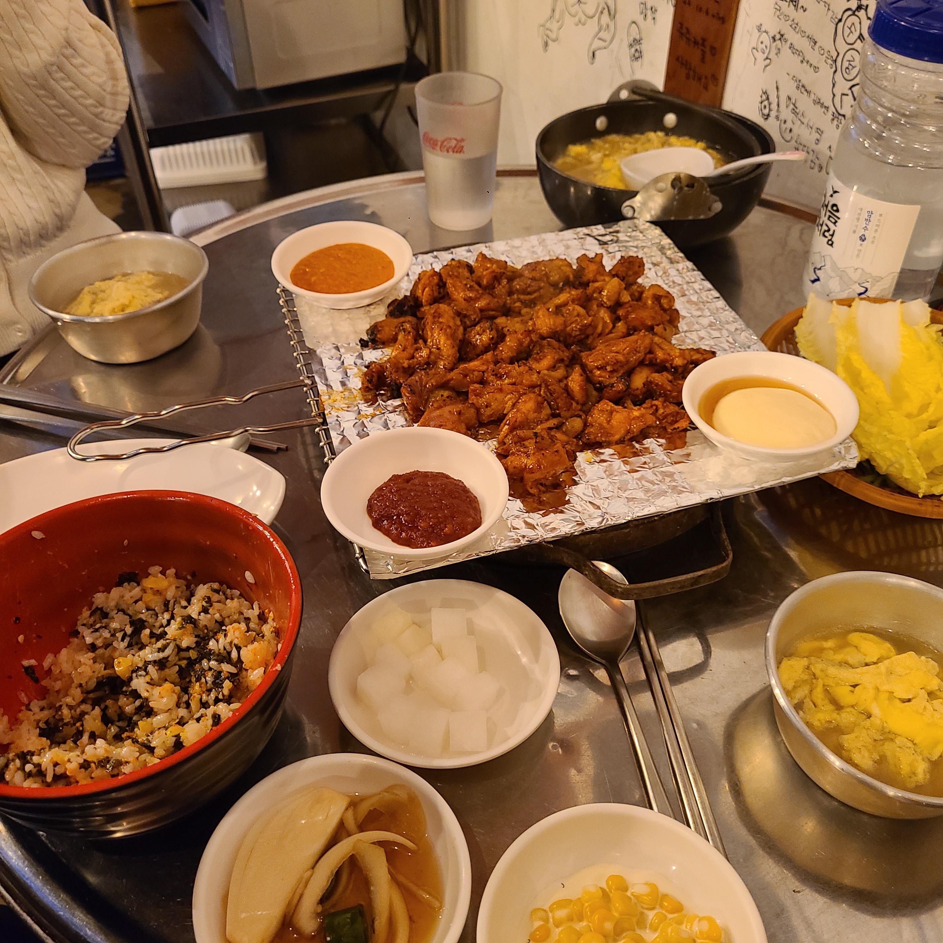 맛있고 양이 적지 않은 주먹밥과 계란찜, 그리고 숯불향부터 제대로인 닭다리살까지.