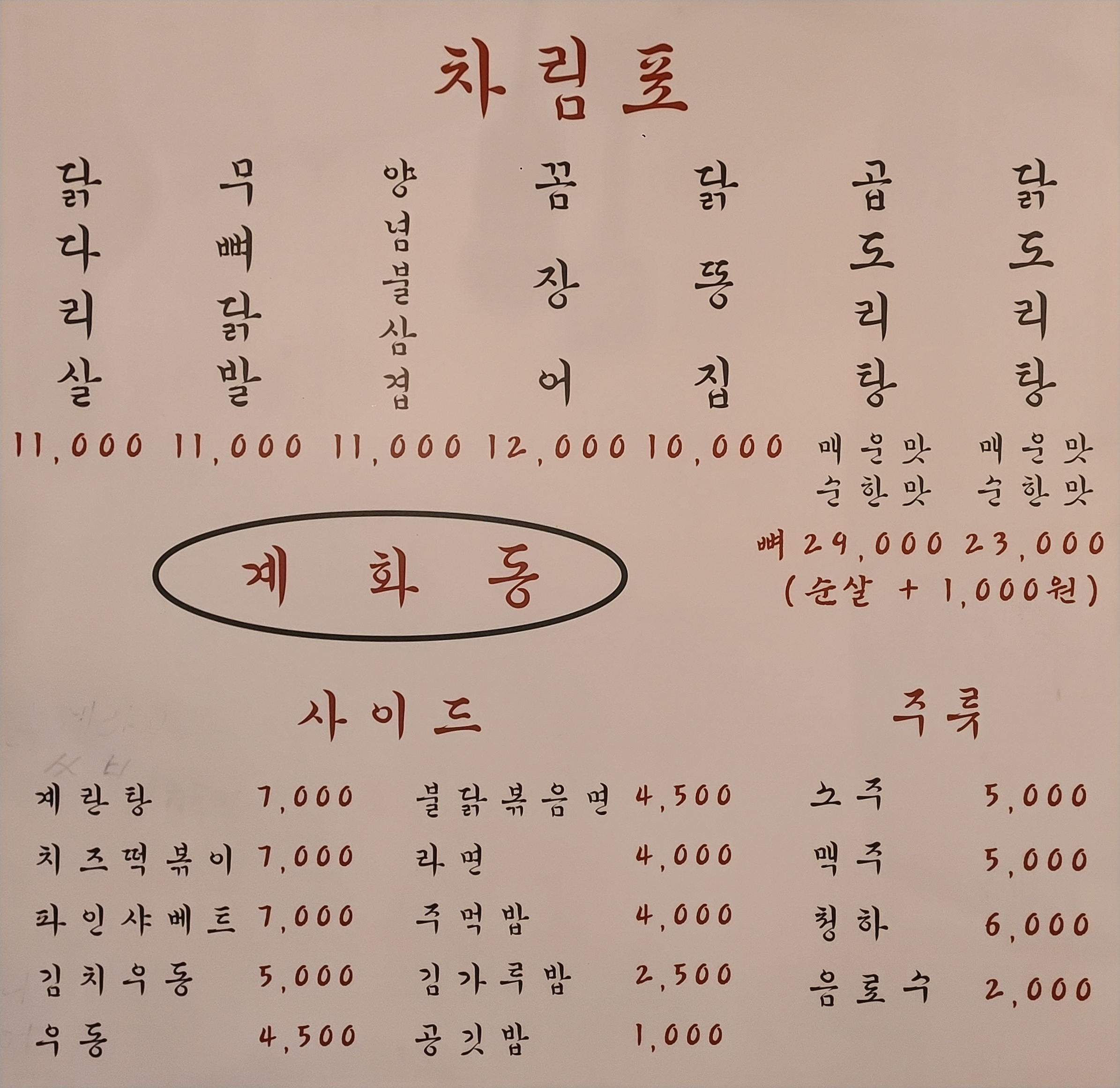 곱도리탕, 닭도리탕 등의 국물메뉴도 판매중이었습니다.
