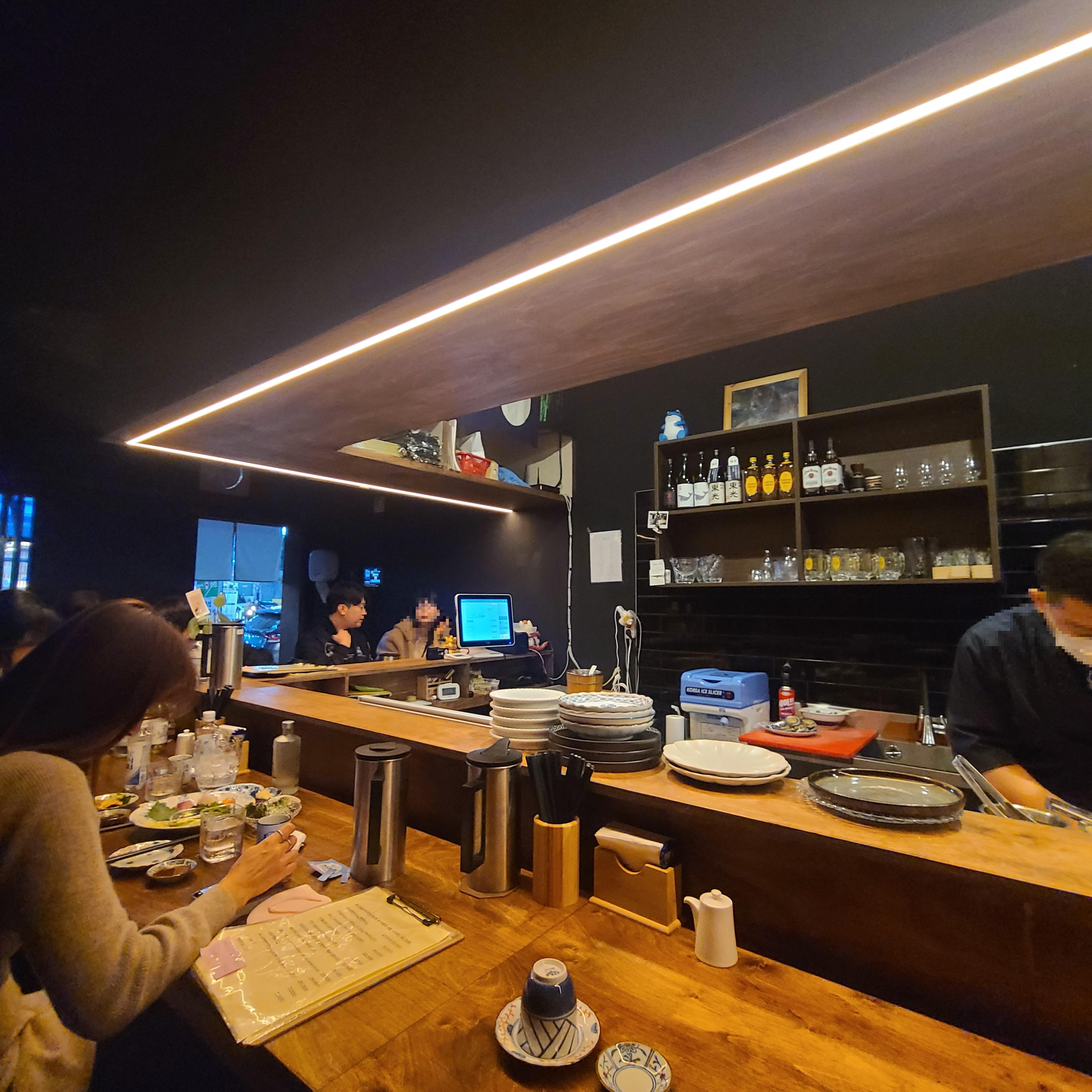 내부는 일본식 선술집처럼 일(一)자 테이블로 구성되어있었습니다.