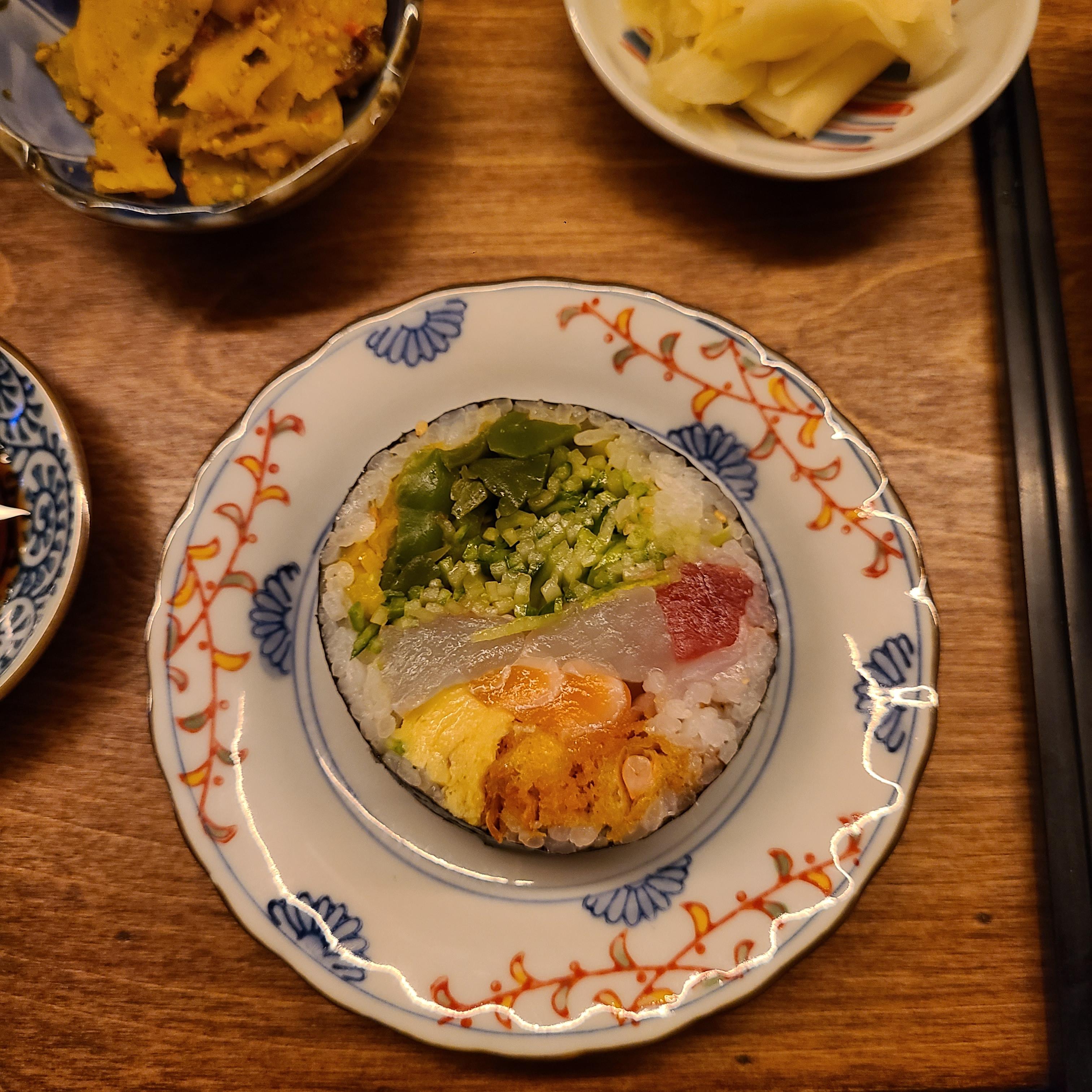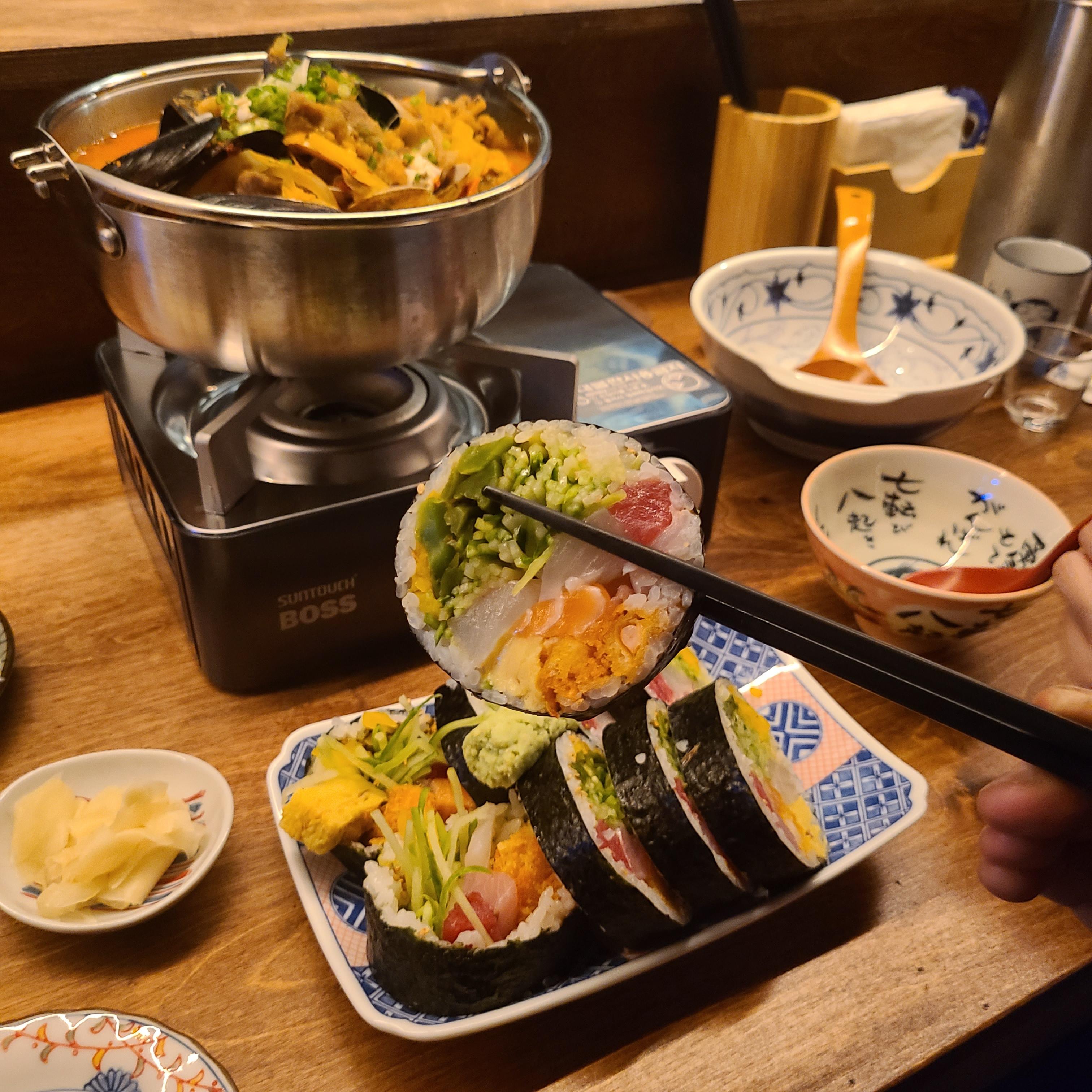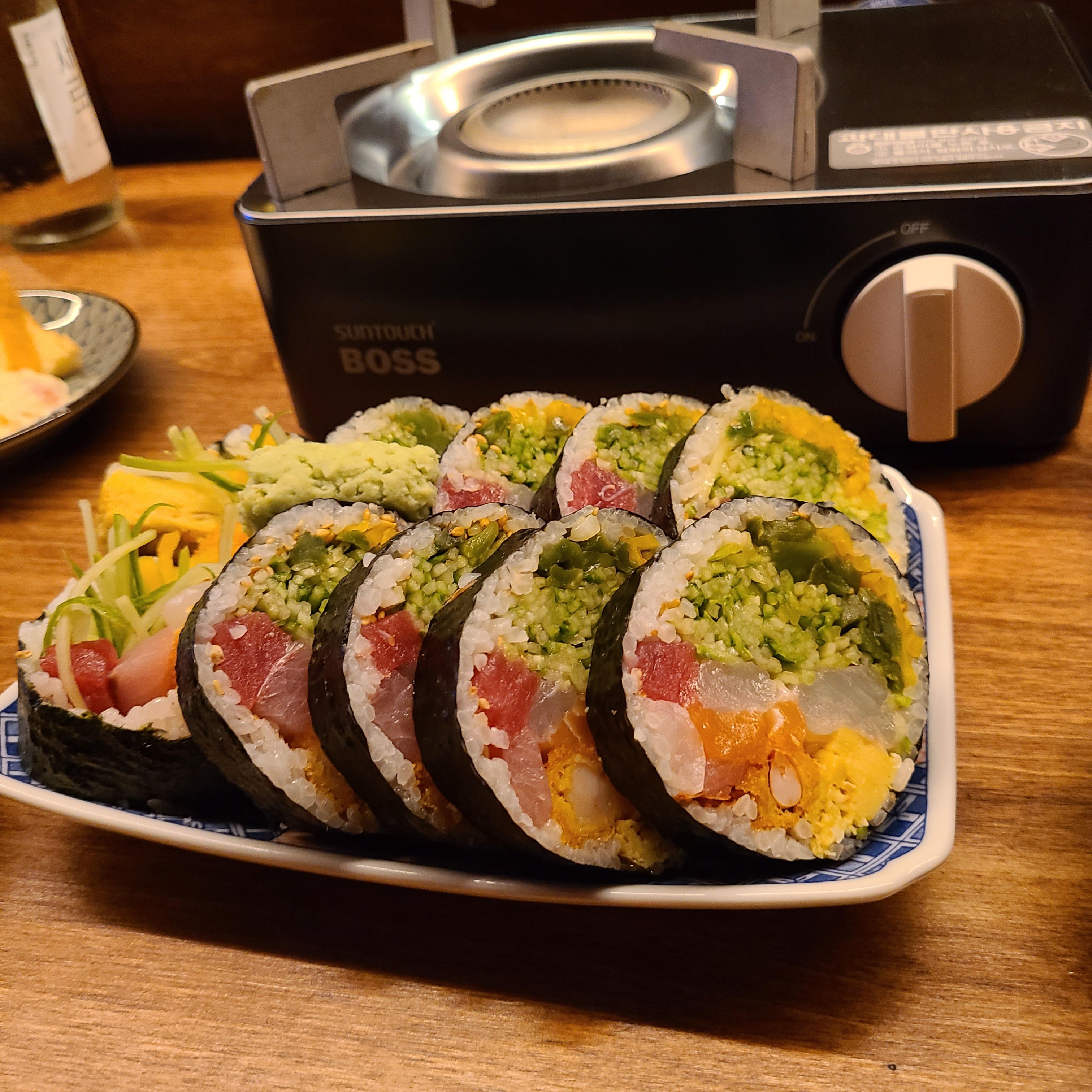 속이 꽉 찬 후토마끼입니다. 저 크기가 어떻게 가늠이 될지 모르겠는데, 절대 한 입에 넣고 먹을 수 없을겁니다.