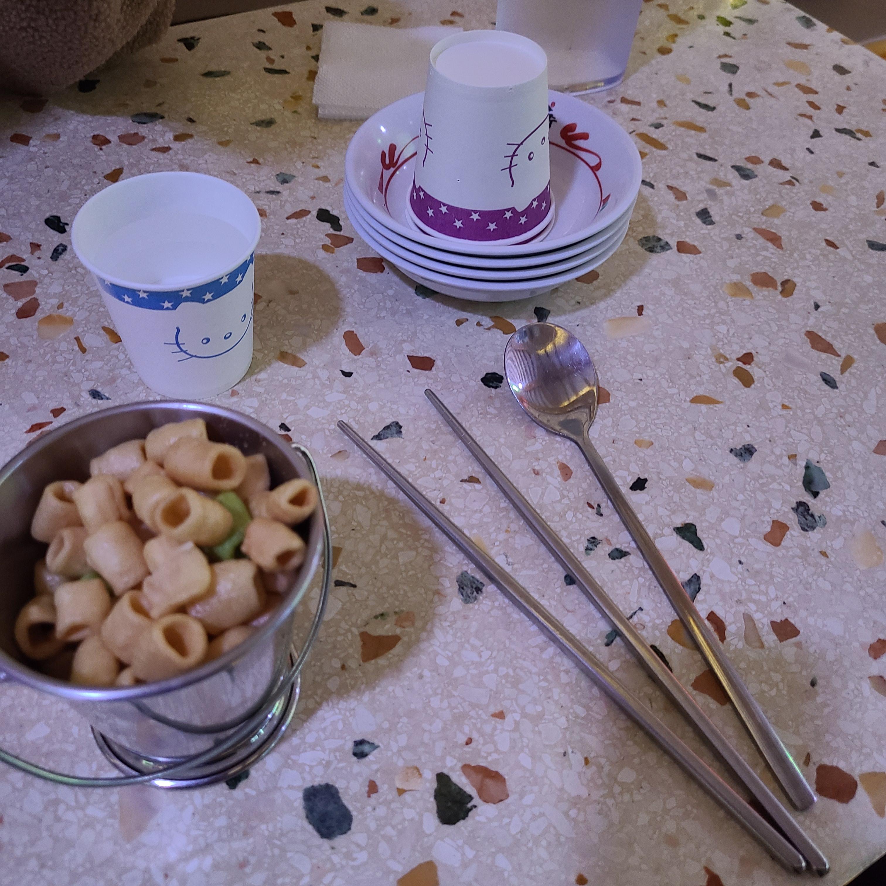 기본안주로는 술집 단골과자가 나오구요. 테이블 옆에서 숟가락, 젓가락, 휴지 등을 꺼내 쓰실 수 있습니다. :)