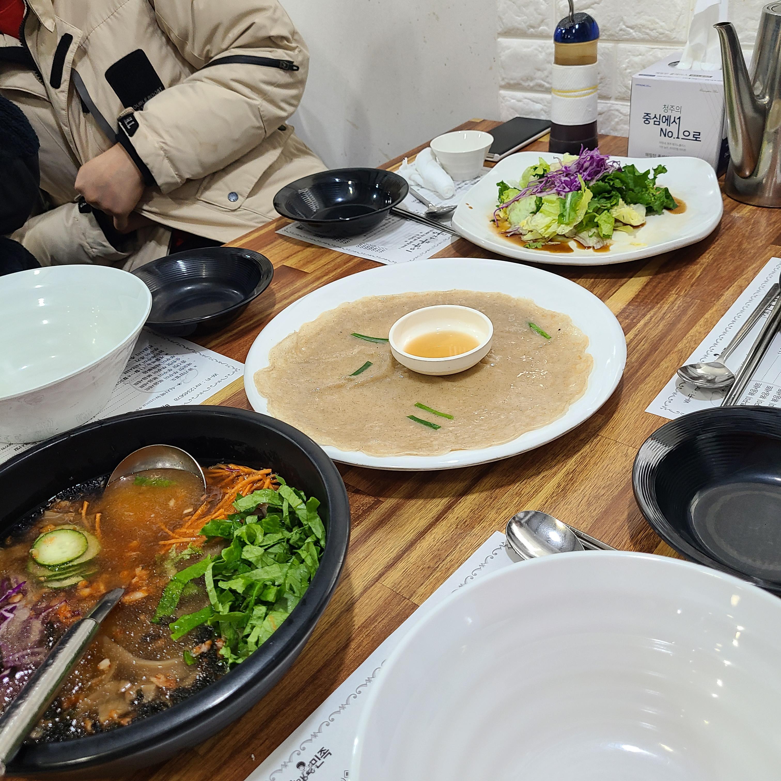 묵국(냉) , 메밀전 , 샐러드를 준비해주십니다.
