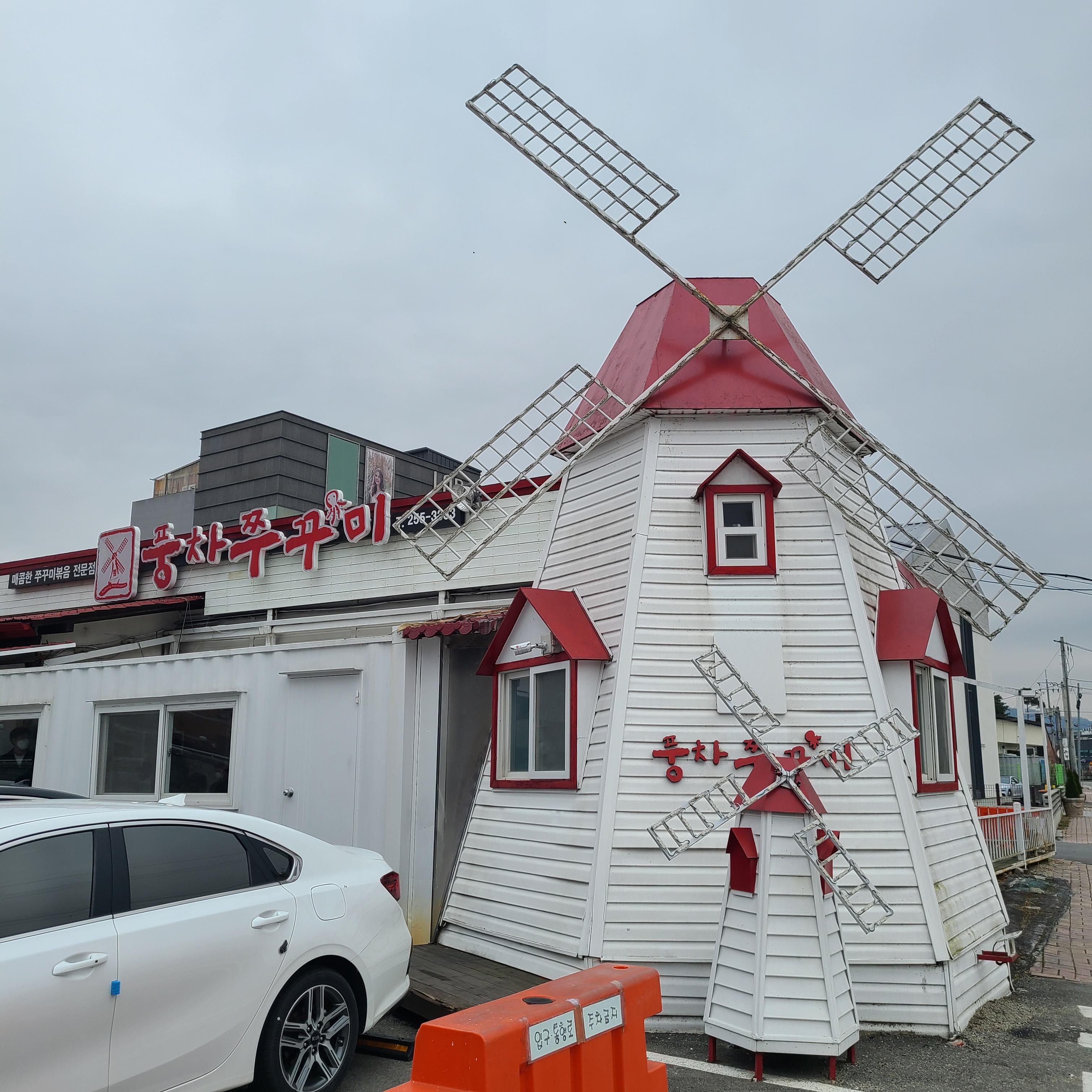 풍차쭈꾸미의 상징인 풍차는 건물 밖과 실내에서 찾아볼 수 있습니다. :)