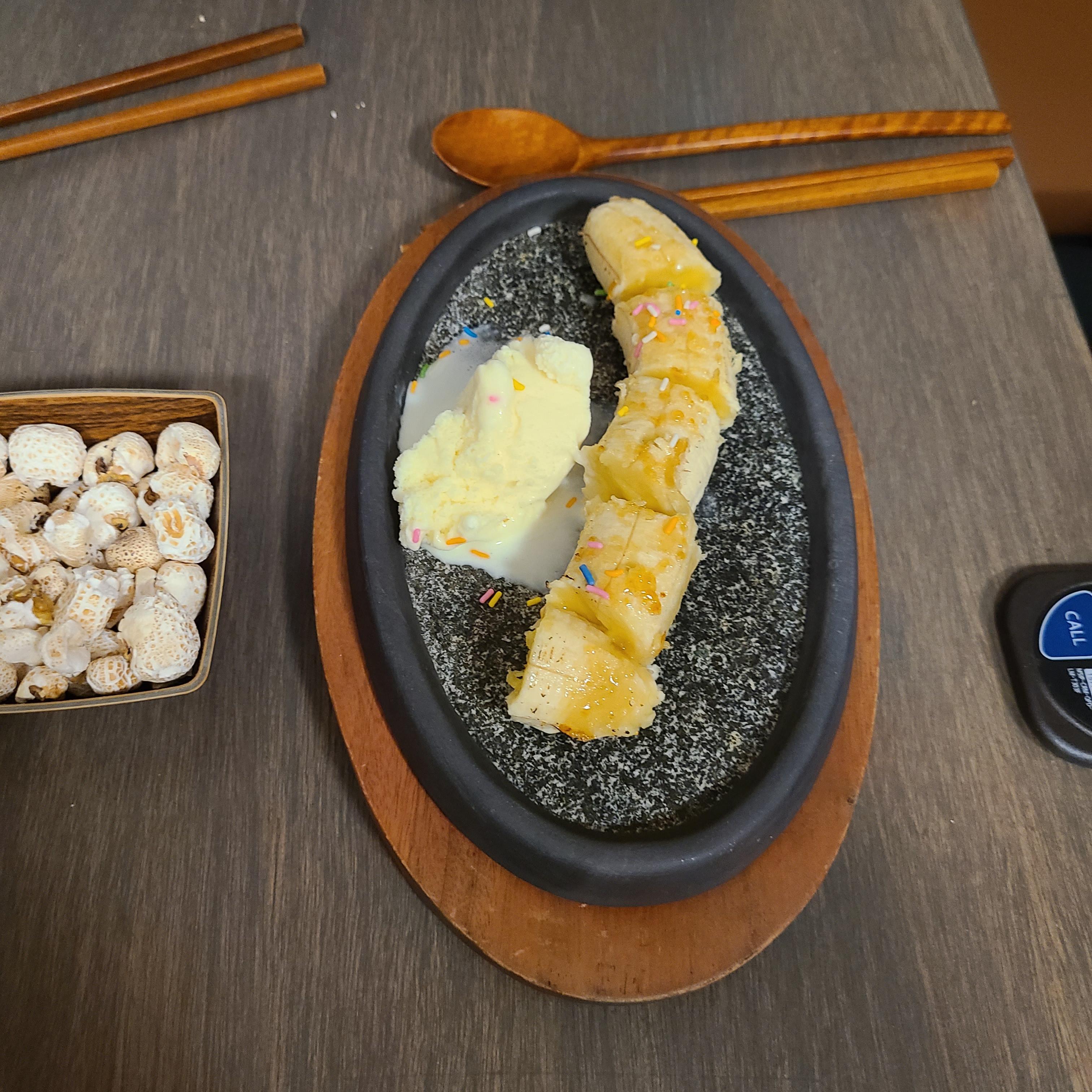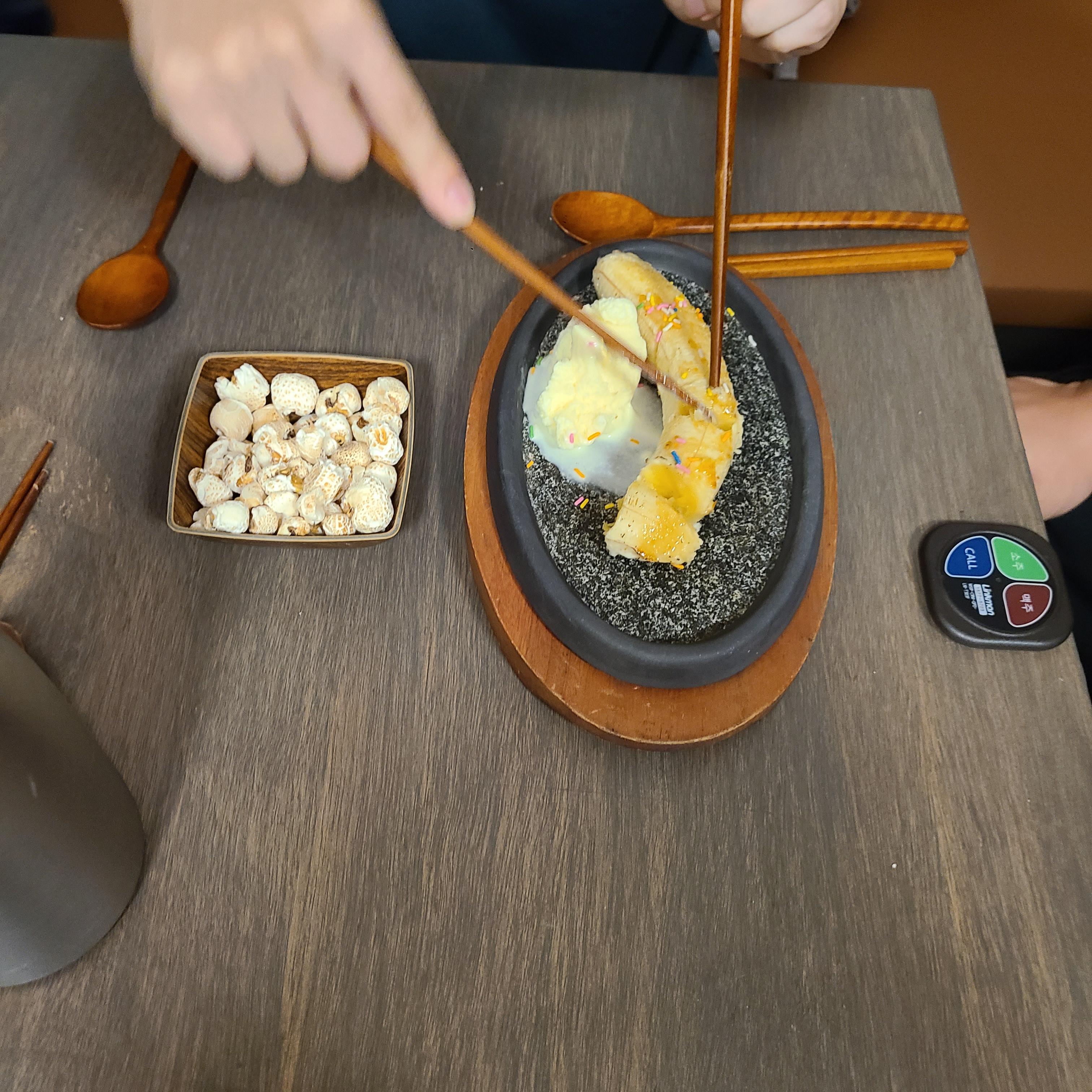 기본안주로는 강냉이를 주고요. 아이스크림과 시원한 바나나를 줍니다.
