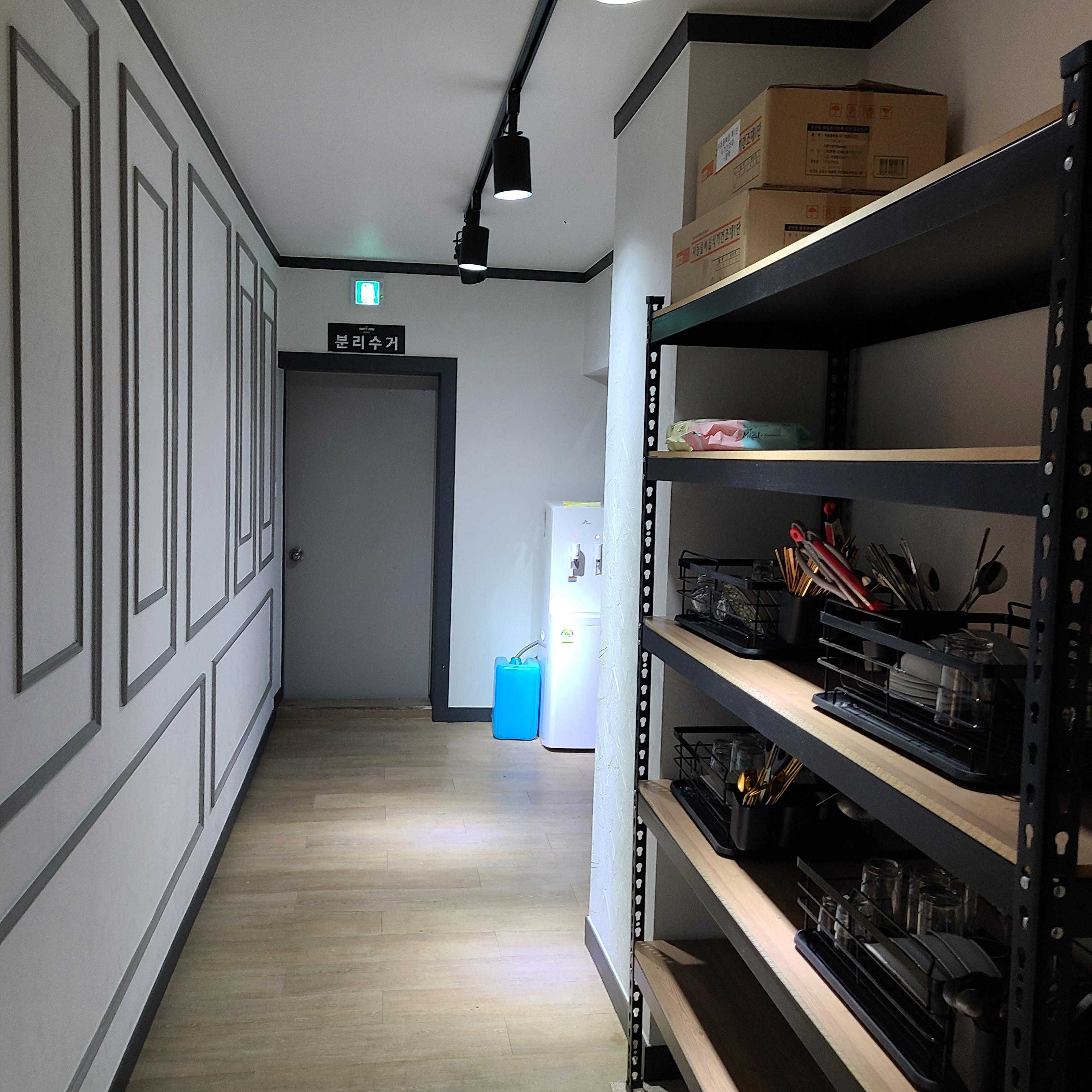 오른쪽 사진은 각종 필요한 물건이 있고, 설거지가 가능한 주방입니다.